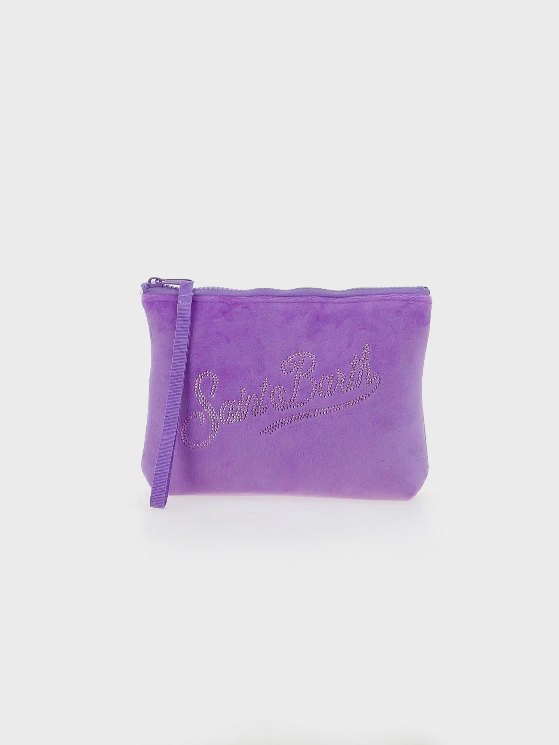 Aline lila Samtpochette mit Saint Barth Strass-Logo