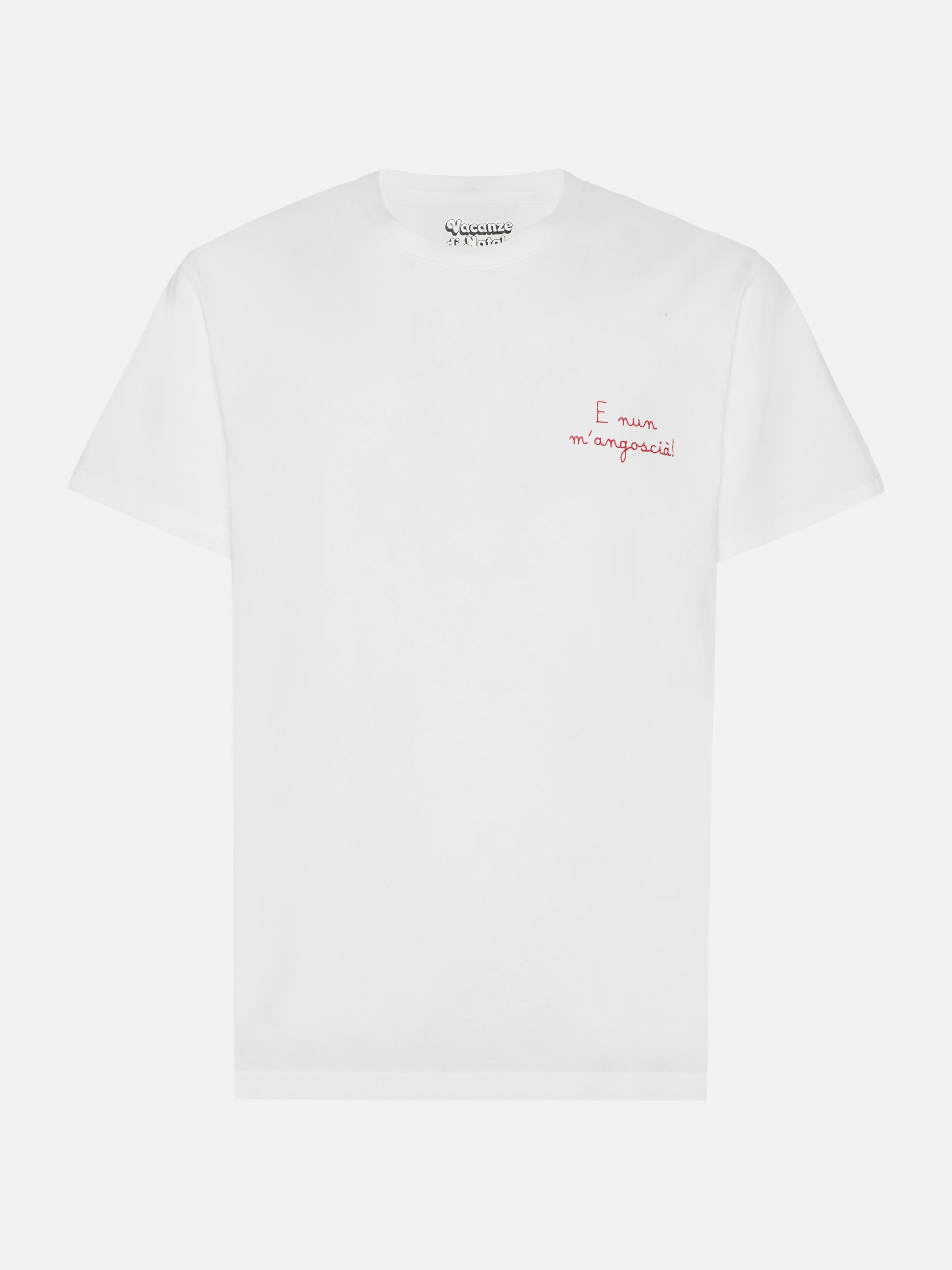 Arnott Warm winter cotton T-shirt in white with E nun m’angoscià embroidery | VACANZE DI NATALE SPECIAL EDITION