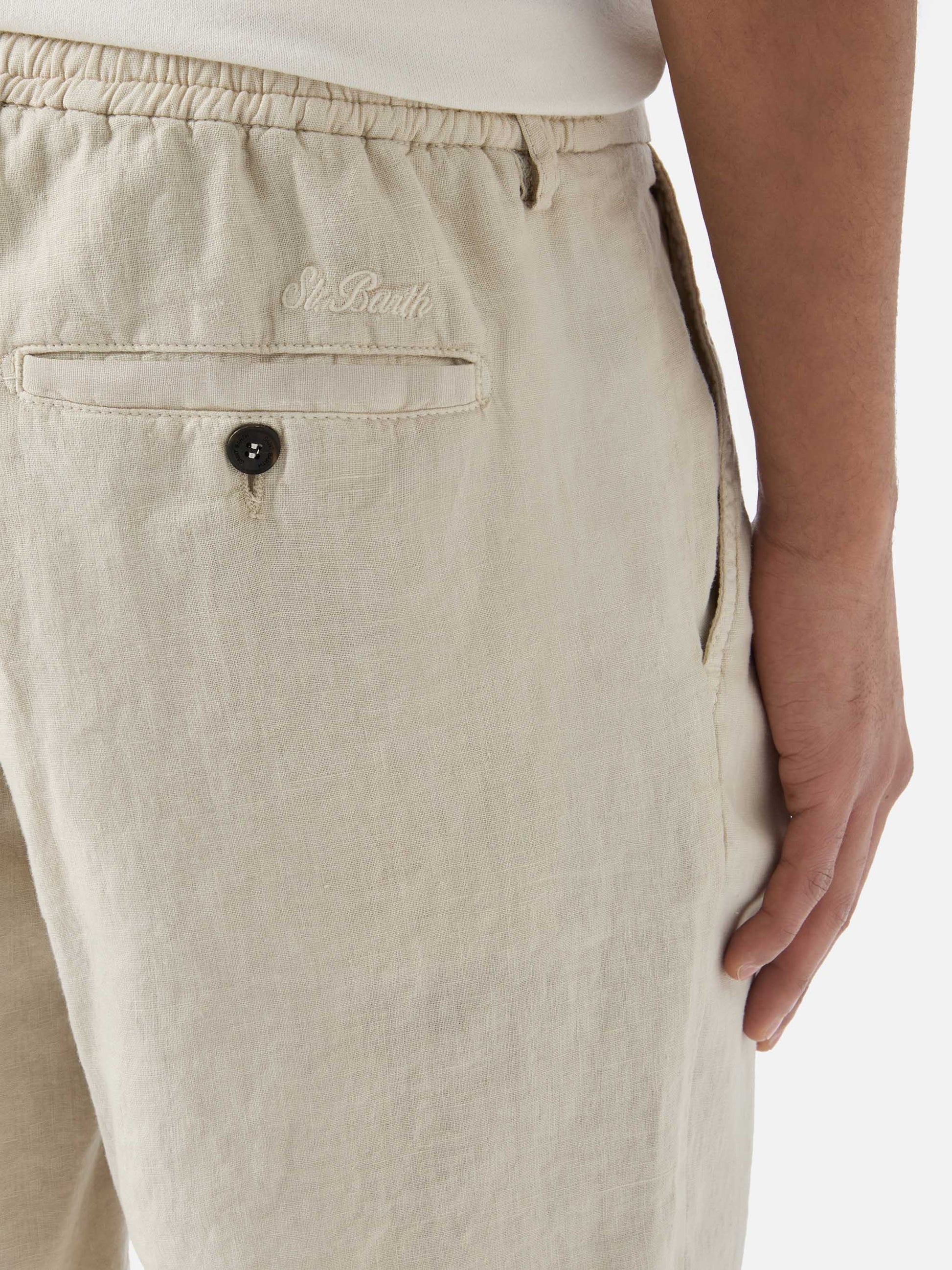 https://it.mc2saintbarth.com/de/products/beige-sebastian-bermuda-shorts-in-pure-linen10781195075930Beige Sebastian bermuda shorts in pure linen169.00https:files/UID_SEB000100138L-MAN-SHORTPANT-WHITE-MC2-MC2_2.jpghttps:files/UID_SEB000100138L-MAN-SHORTPANT-WHITE-MC2-MC2_2.jpgEURInStockSHORT PANT650948215130Alle Produkte – nur von Man649134276954AVADA - Bestseller278947365048Bermudashorts und Hosen für Herren293962940600Herren-LeinenkollektionThe Sebastian bermuda shorts are crafted from pure linen, a lightweight and breathable fabric designed to provide comfort and ease. The solid color design enhances the clean aesthetic of the style. The waistband with elasticated back and front tab with button and internal button ensures a comfortable fit. The style is completed with a metal zip fly, internal flat cotton drawstring, front slanted pockets and back welt pockets with button. A tone-on-tone St. Barth embroidery above the right back pocket adds a distinctive detail. The style features a regular leg, mid-rise waist and regular fit.