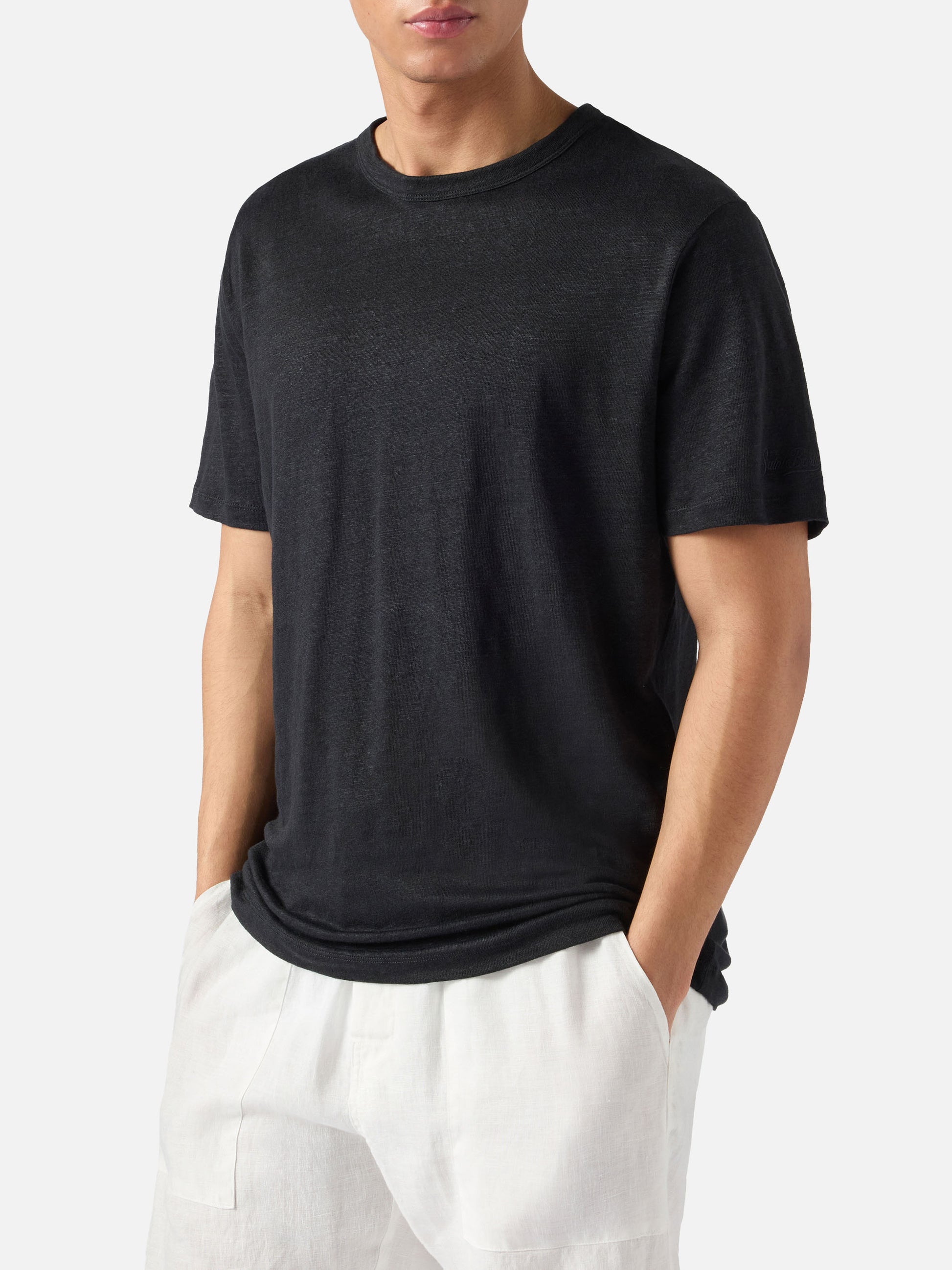 Black Ecstasea pure linen t-shirt with logo embroidery