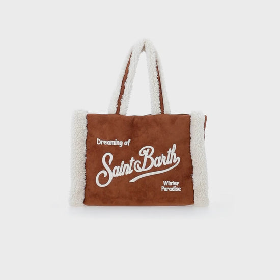 Kamelbraune Soft Bag Small mit Saint Barth Logo und Schultergurt