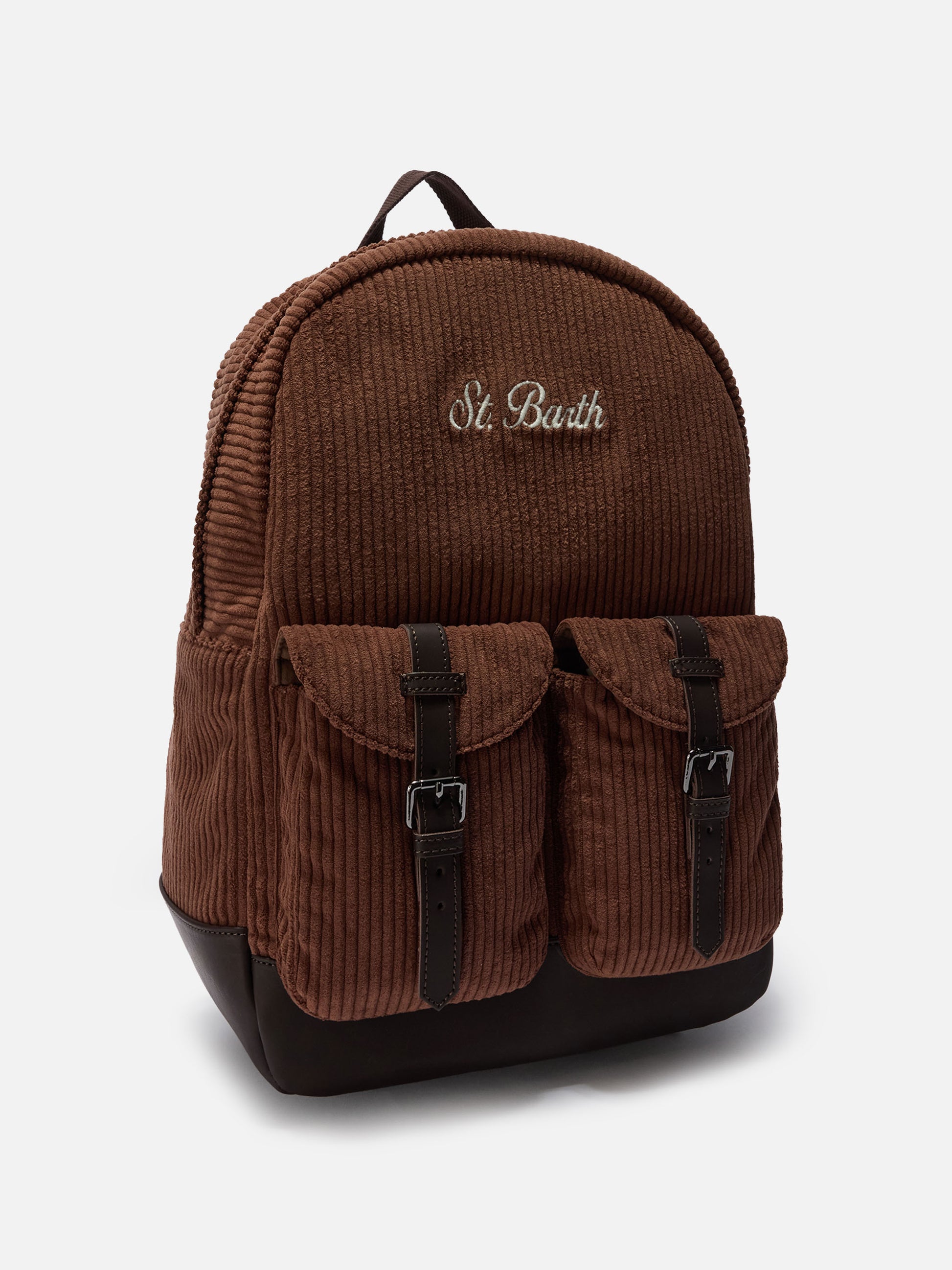 Cody Cord-Rucksack aus braunem Wollmischgewebe mit Lederdetails