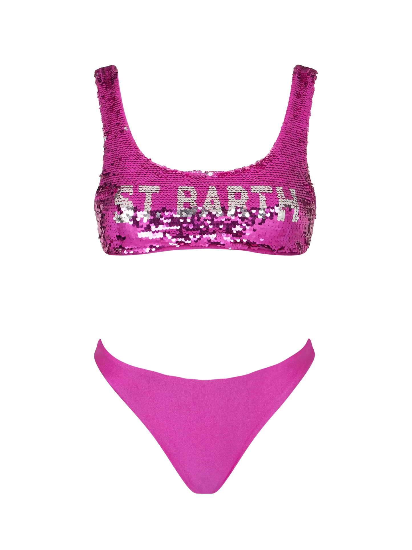 Damen-Bralette-Bikini mit fuchsiafarbenen Pailletten