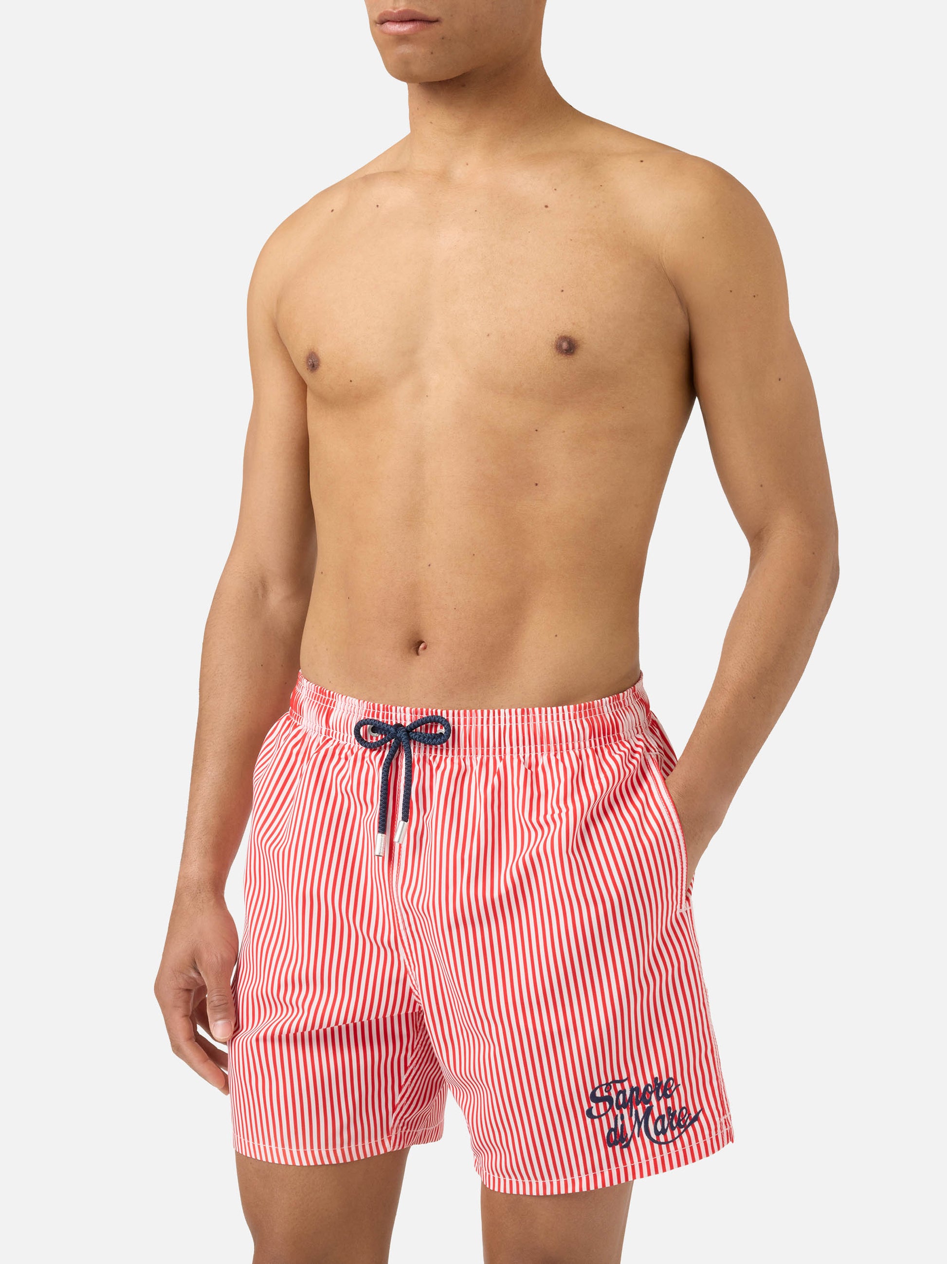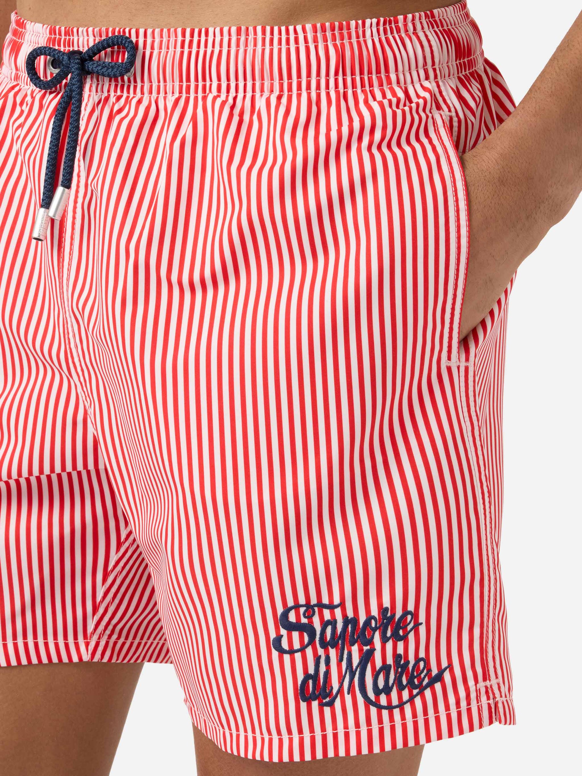 https://it.mc2saintbarth.com/de/products/gustavia-red-striped-swim-shorts-with-sapore-di-mare-embroidery-special-edition10773486436698Gustavia red striped swim shorts with Sapore di Mare embroidery | Special Edition115.00https:files/UID_GUS000108485L-MAN-SWIMSHORT-RED-MC2-SAPOREDIMARE-20260410164227_1.jpghttps:files/UID_GUS000108485L-MAN-SWIMSHORT-RED-MC2-SAPOREDIMARE-20260410164227_1.jpgEURInStockSWIMSHORT650948215130Alle Produkte – nur von Man649134276954AVADA - Bestseller603371077978Badeshorts Alle673887977818Dots, Stripes & Checks Swim Shorts674126365018Man striped patterns288251543736Mann – Alle Badebekleidung anzeigen674079899994Men Mini Print Swim Shorts673877852506Men Print & Graphic Swim Shorts673877754202Men Soft Hand Swim Shorts673877360986Men Swim Shorts644396843354Sapore di Mare626727649626The Soft Hand Fabric - Herren654689960282Upselling_Man_SwimshortsGustavia swim shorts in the Sapore di Mare Special Edition are crafted from lightweight fabric with a soft peach-touch finish that ensures comfort and a pleasant feel on the skin. The striped pattern in shades of red and white recalls a timeless marinière aesthetic, enriched by the contrasting Sapore di Mare embroidery that gives the style an iconic and distinctive character. The elasticated waistband with drawstring allows the fit to be easily adjusted, while the construction with side pockets, back pocket and stretch antibacterial inner mesh ensures practicality and comfort during wear.
