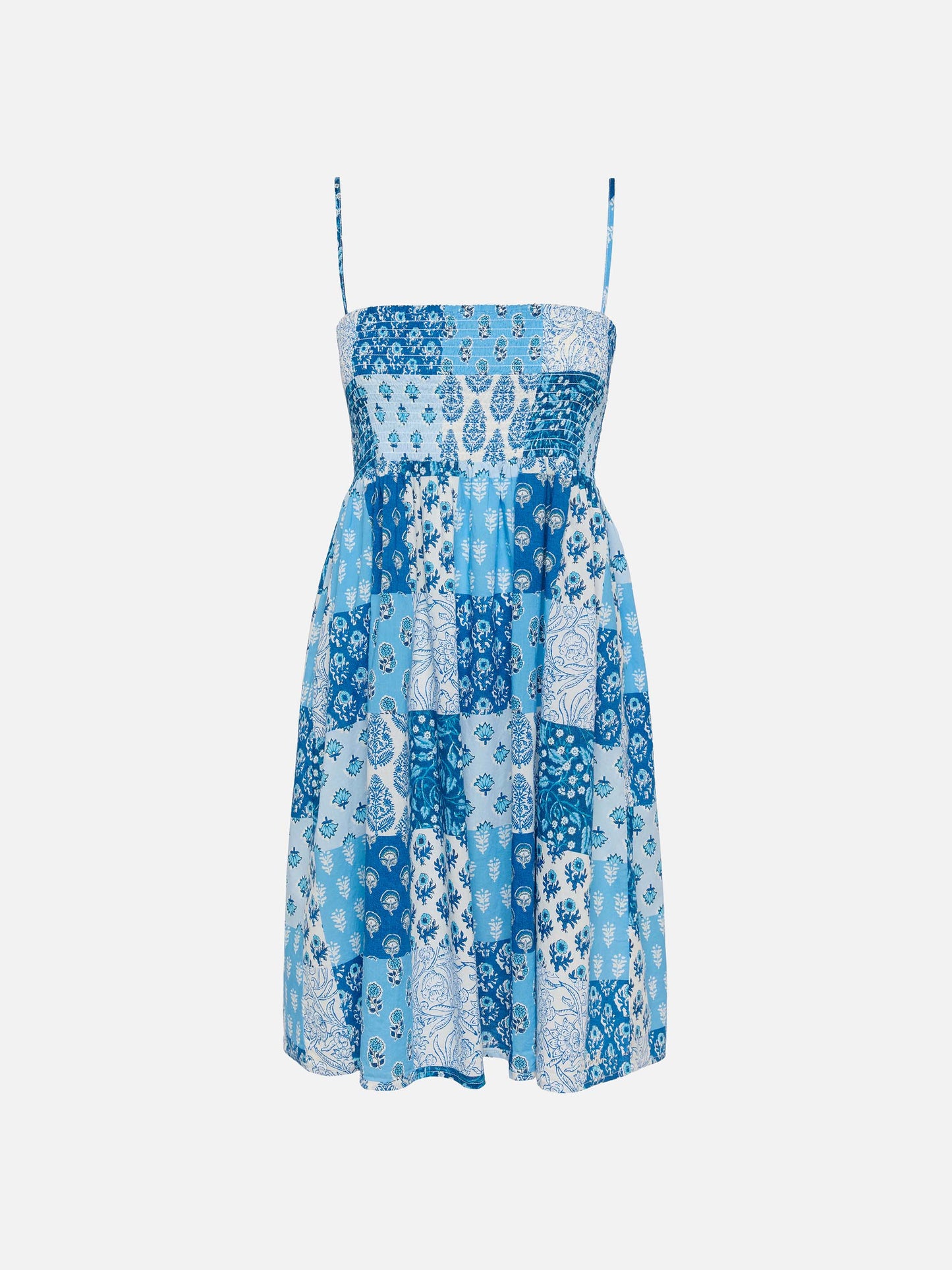Hawa Baumwollkleid mit gesmoktem, besticktem Mieder
