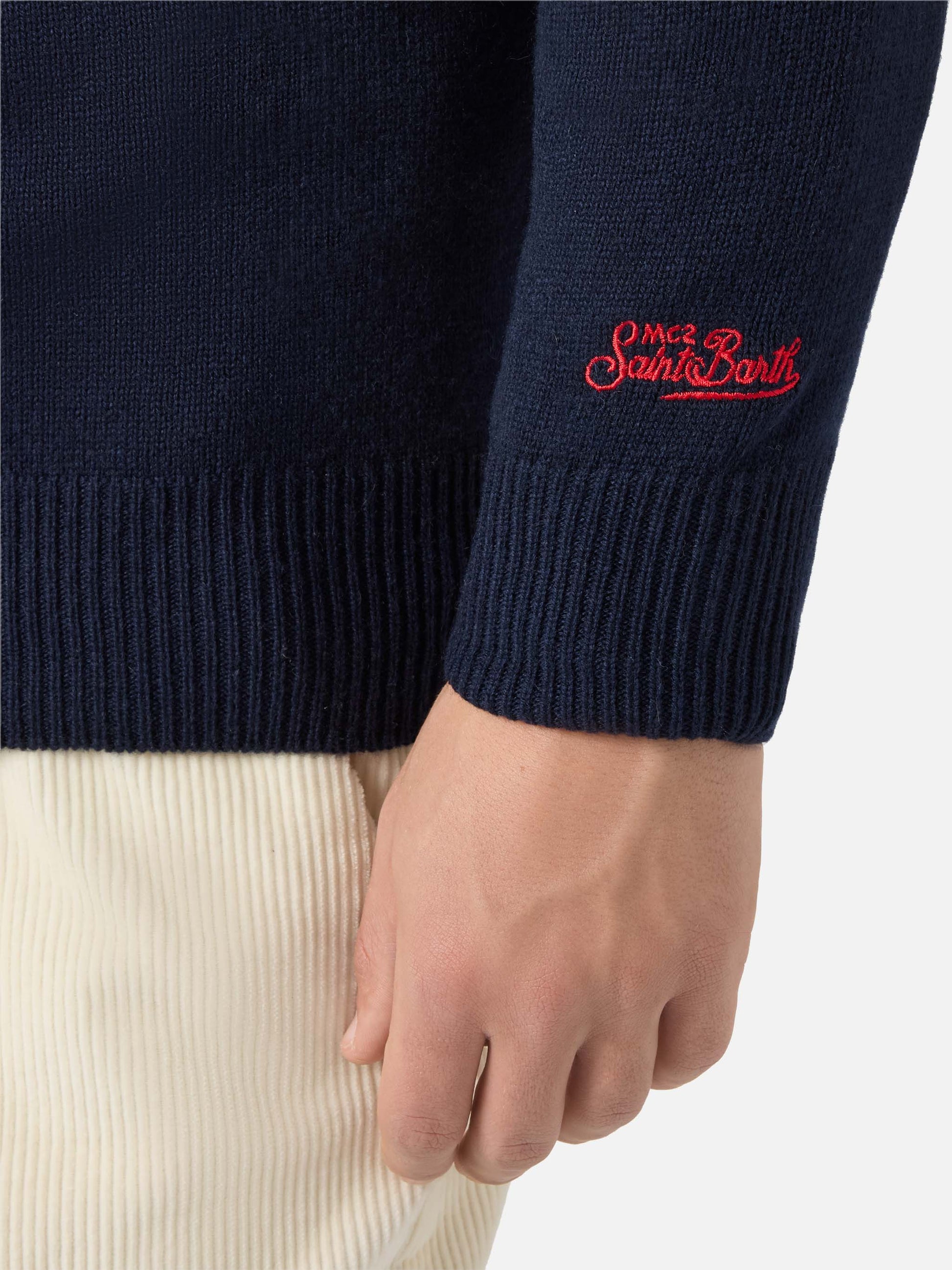 Wengen-Mütze aus weißem Kaschmir mit St. Moritz-Stickerei