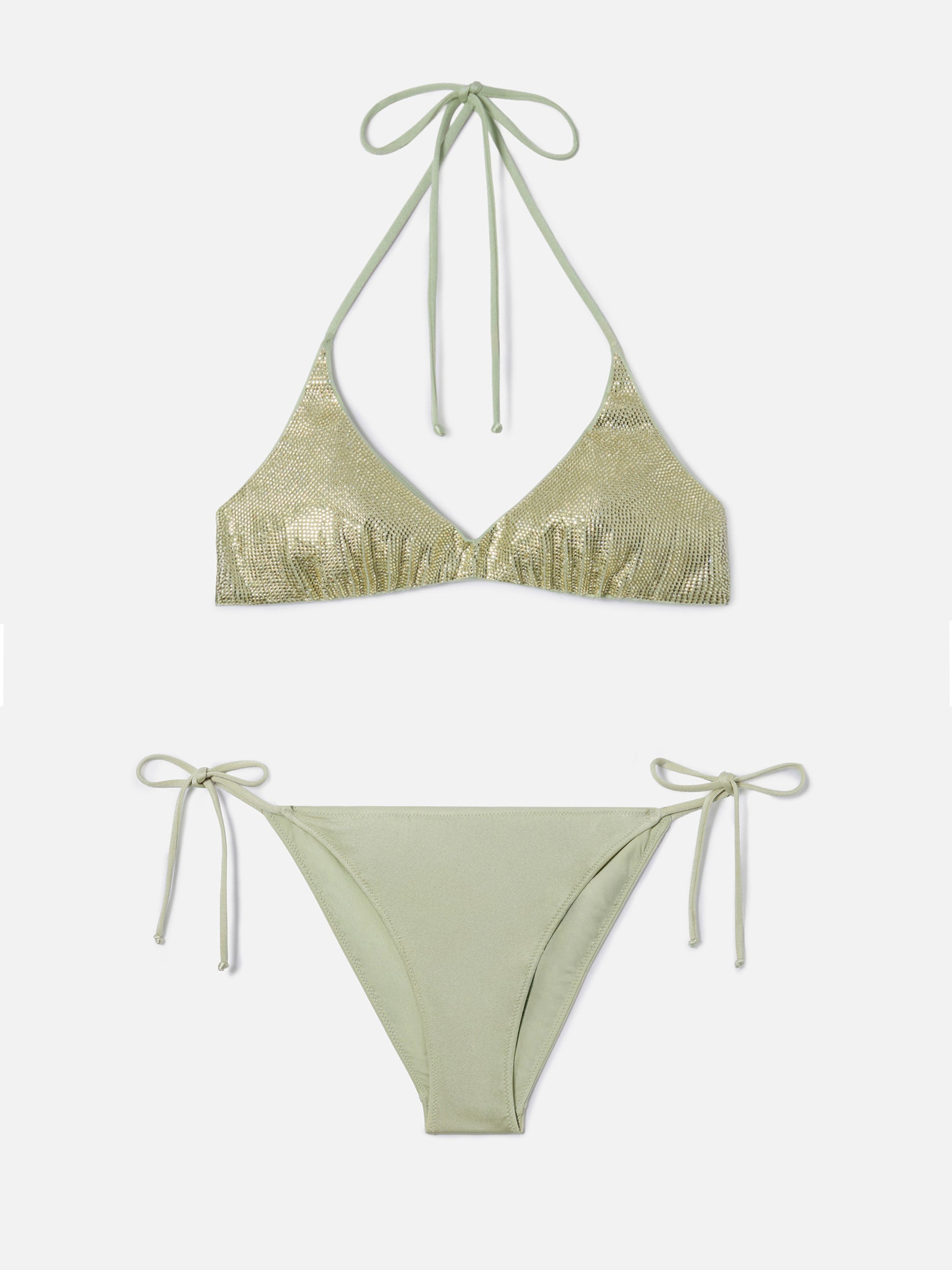 Hespera Virgo mint green glossy finish bikini with rhinestones