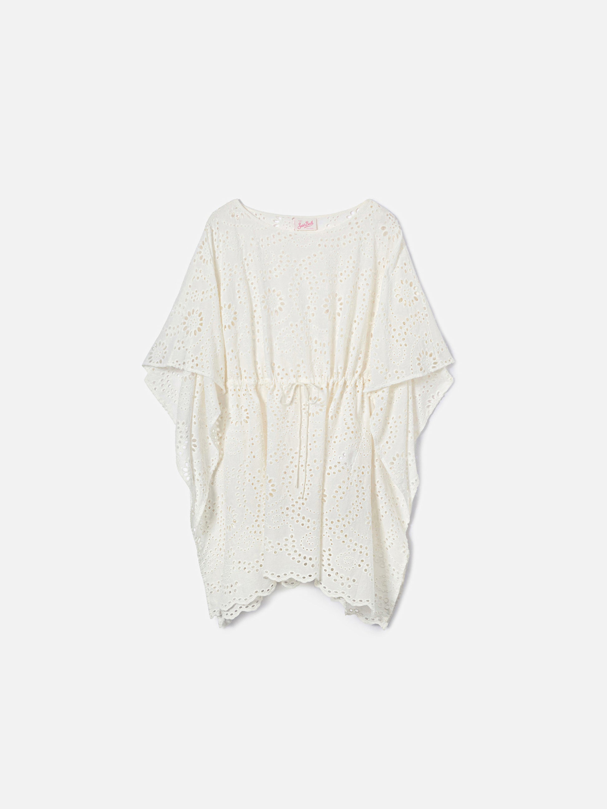 Iria short kaftan in white sangallo textile