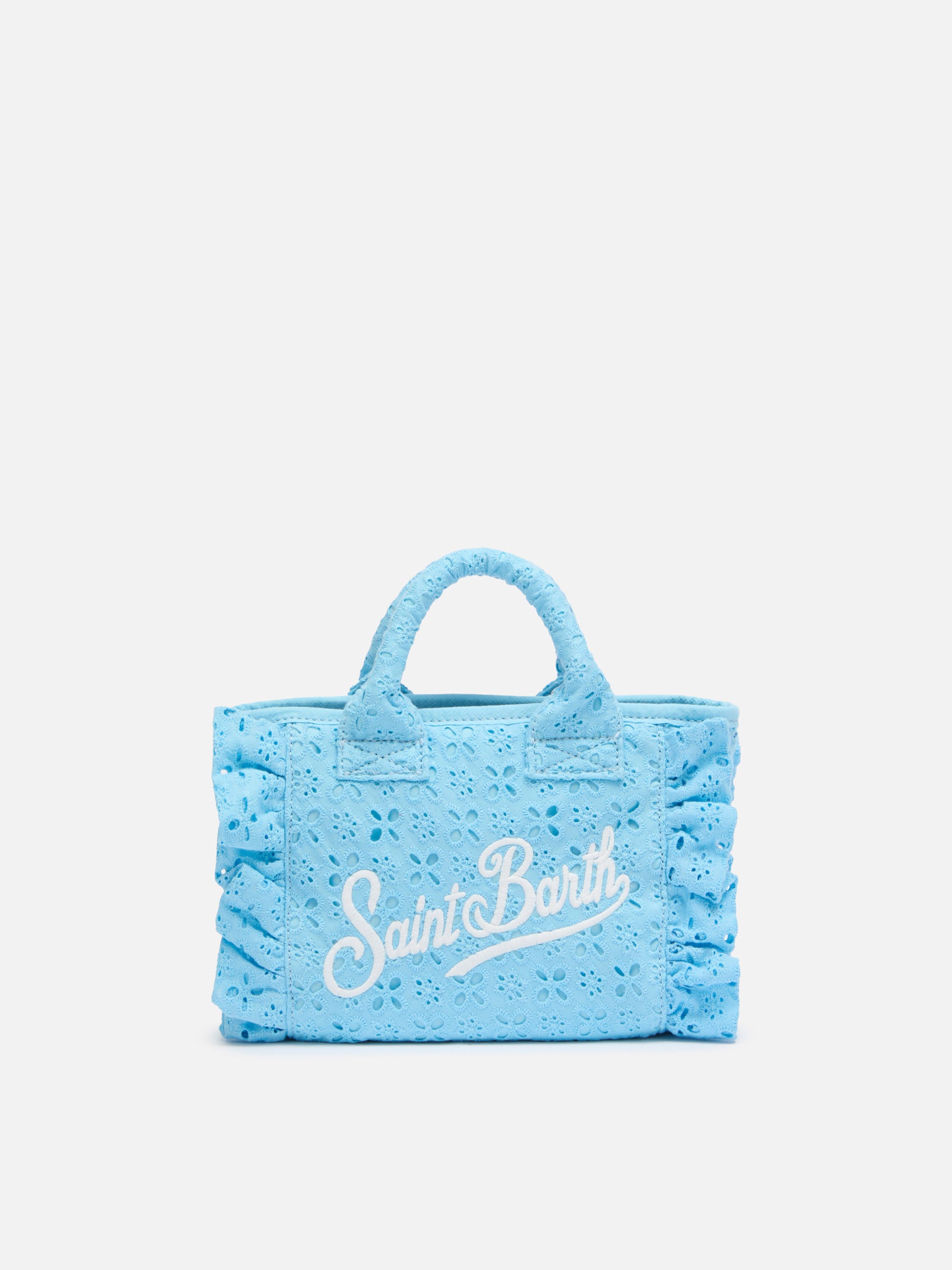 Hellblaue Mini Vanity Volant-Tasche aus Sangallo-Spitze