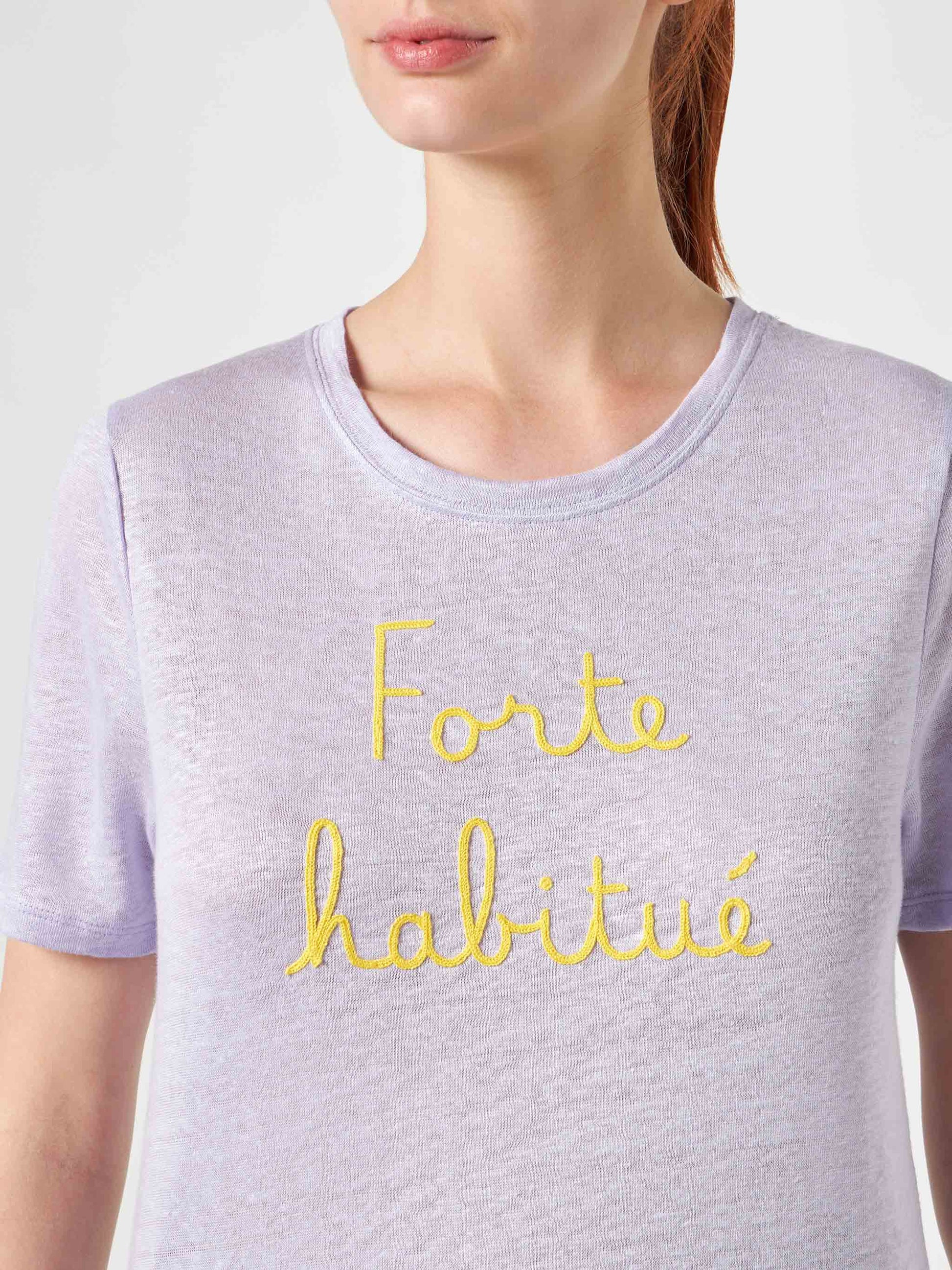Leinen-T-Shirt mit Forte Habituè-Stickerei