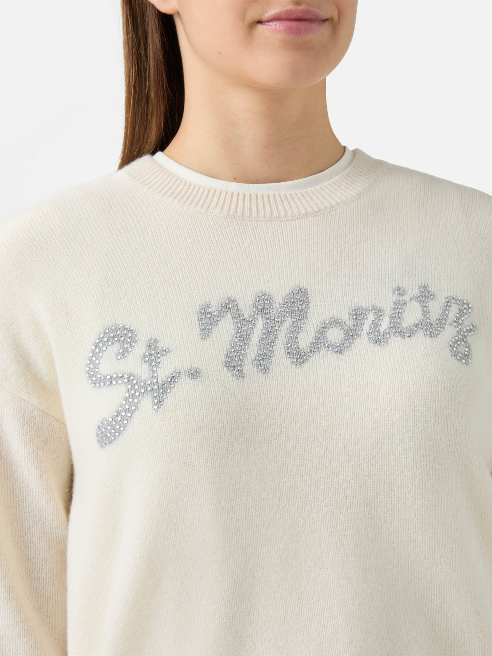 Louise Kaschmirpullover in Weiß mit St. Moritz Strassapplikation