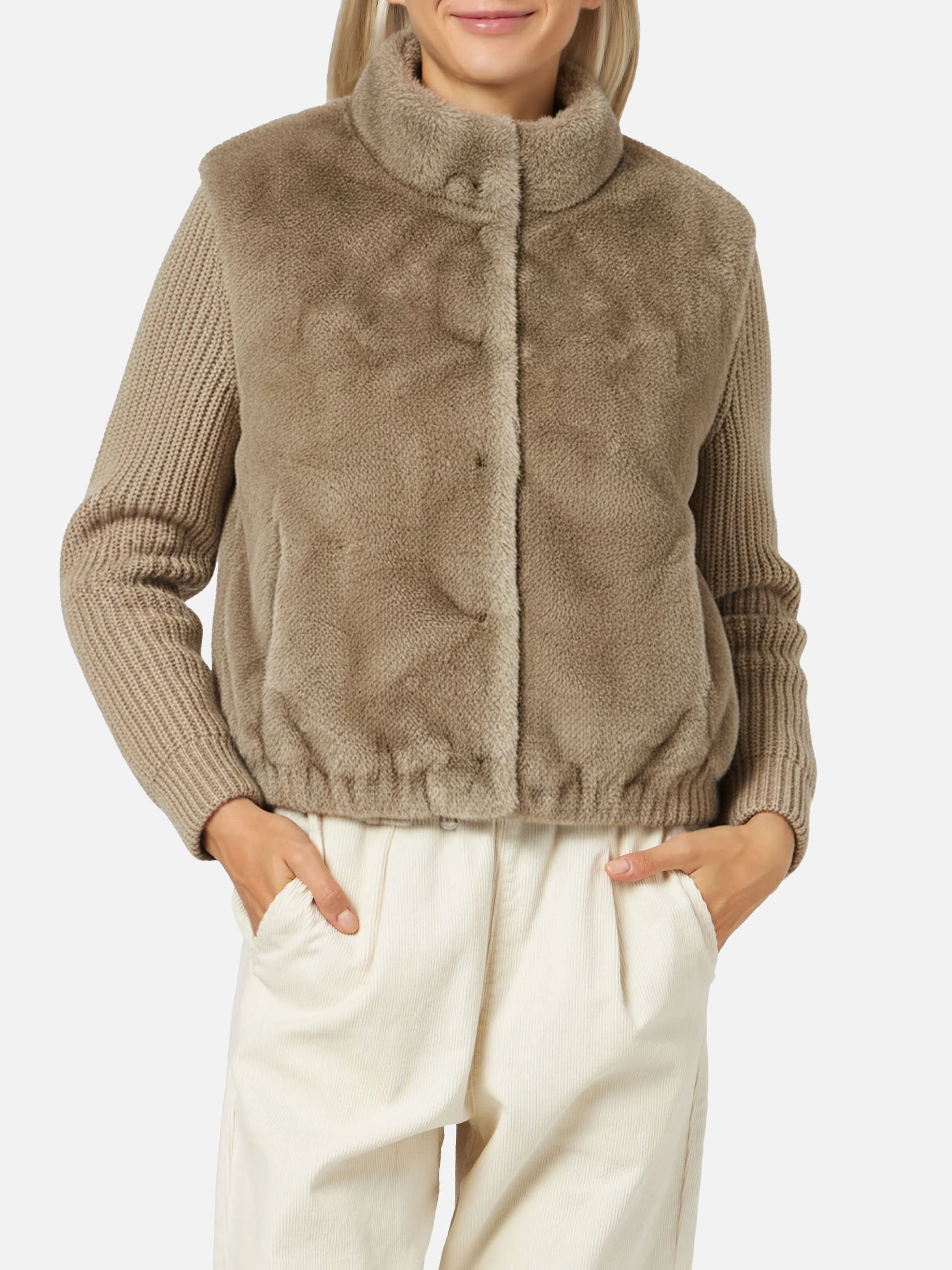 Mael Kunstpelzweste mit Strickärmeln