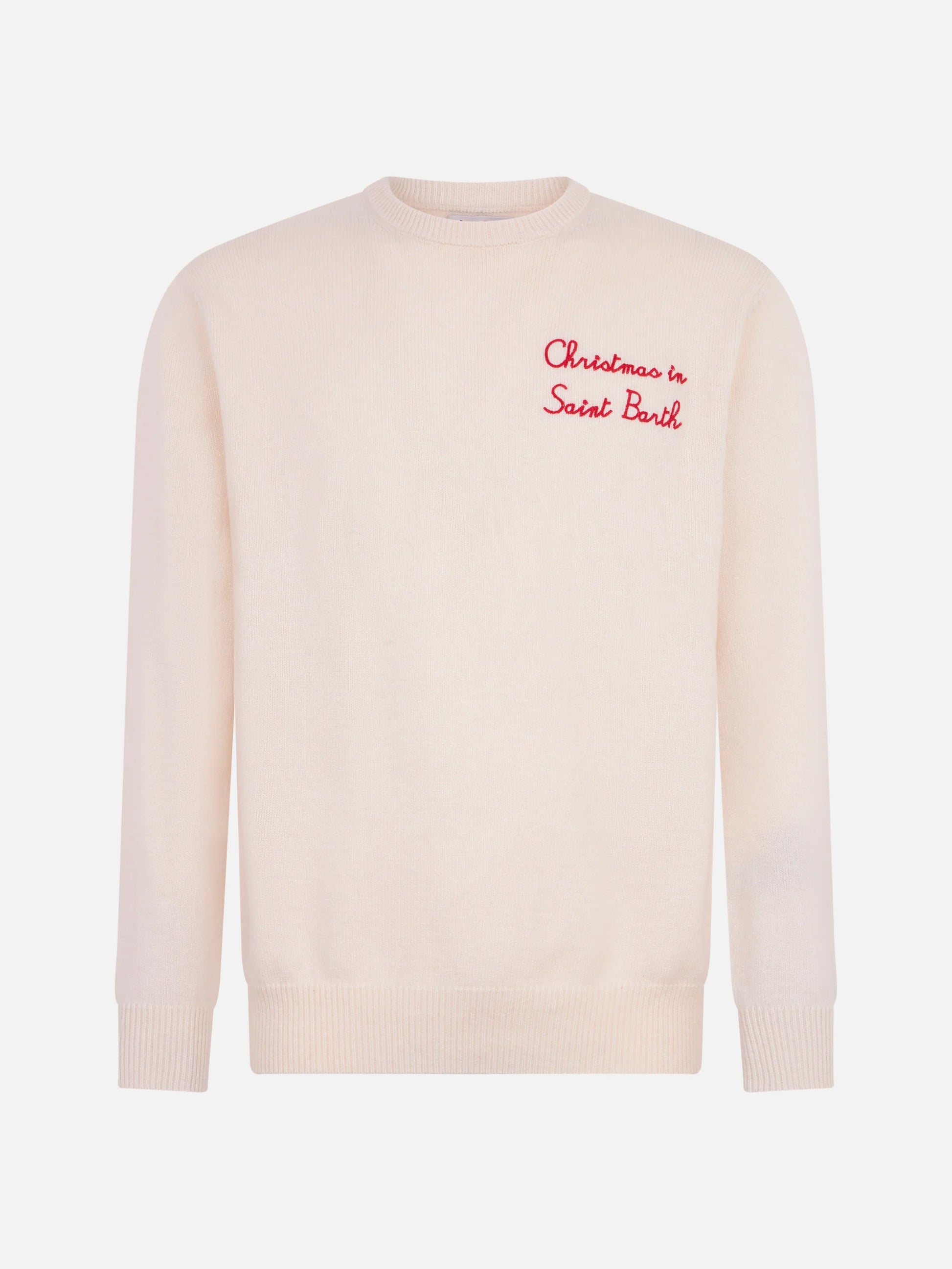 Herrenpullover mit Rundhalsausschnitt und „Christmas in Saint Barth“-Stickerei