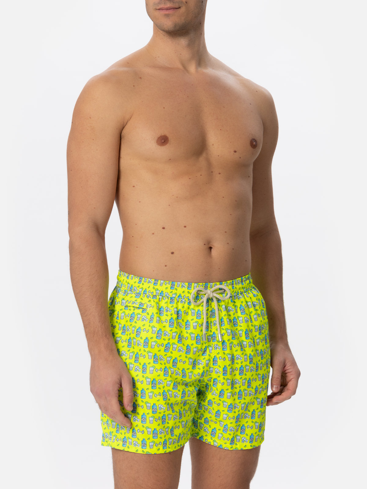 Herren-Badeshorts aus leichtem Stoff mit Gin- und Gym-Print