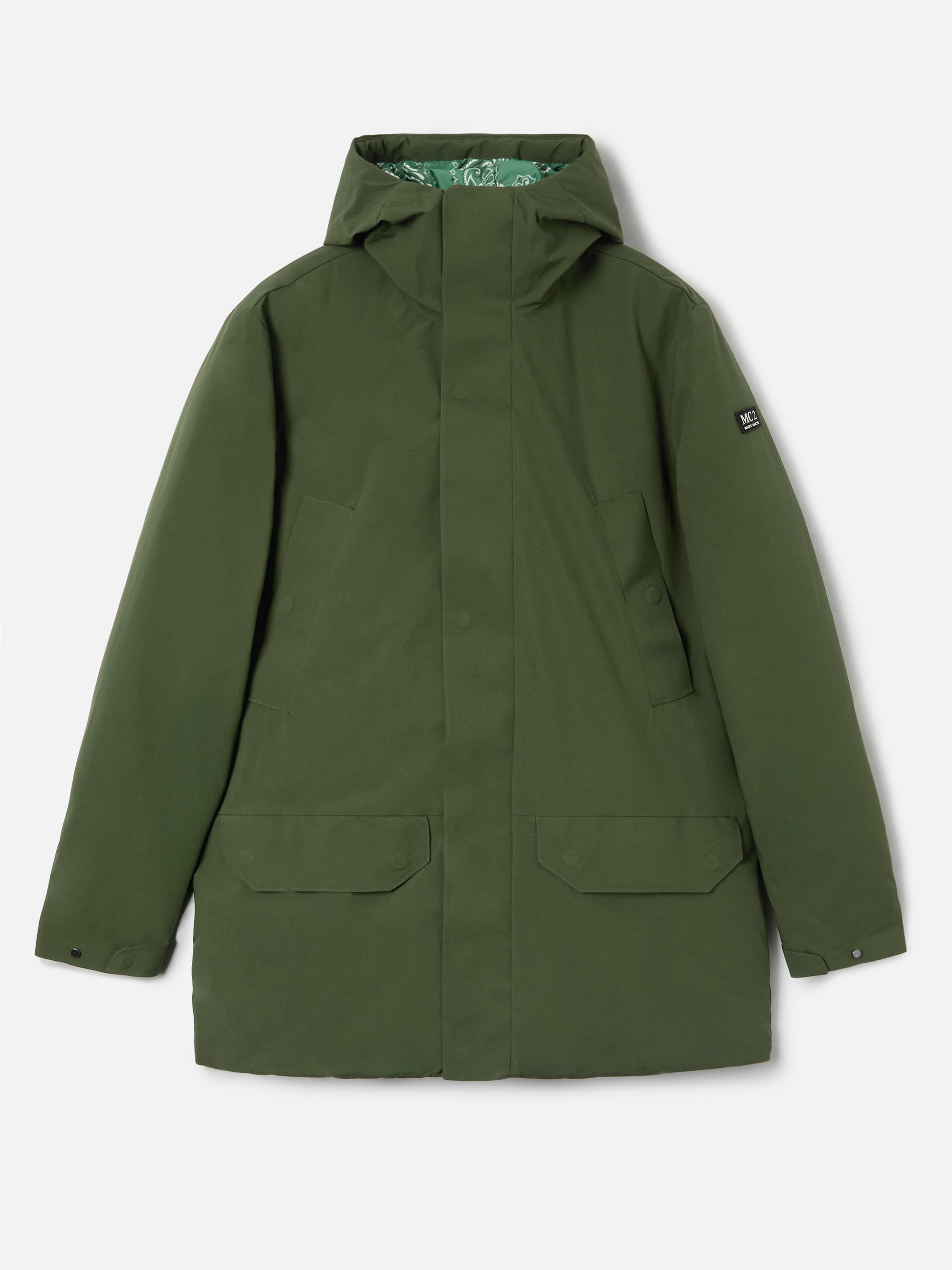 Militärgrüner Parka Voyager für Herren mit Kapuze und Bandana-Print