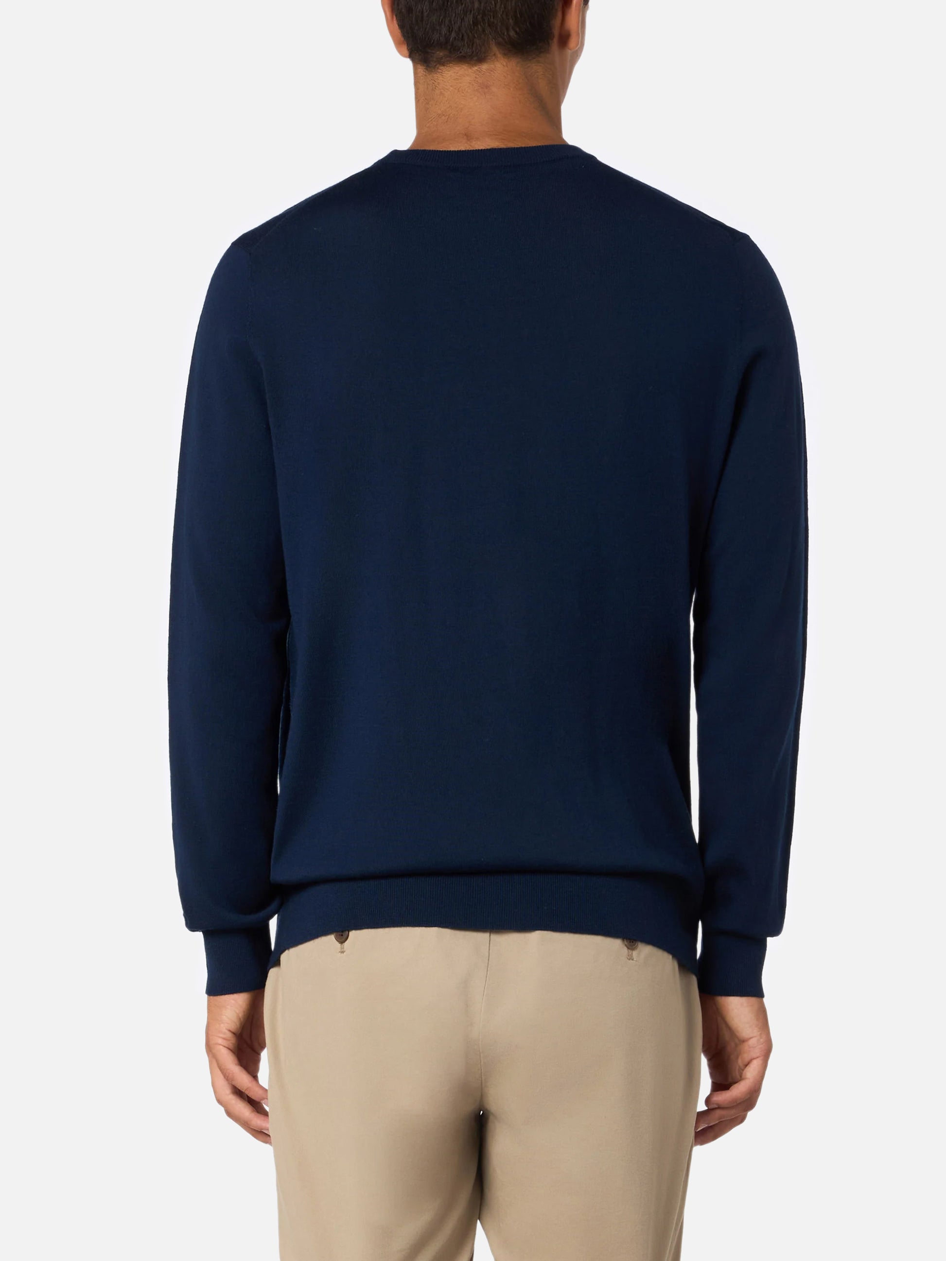 Blauer, marineblauer Pullover aus Merinowolle von Regent für Herren
