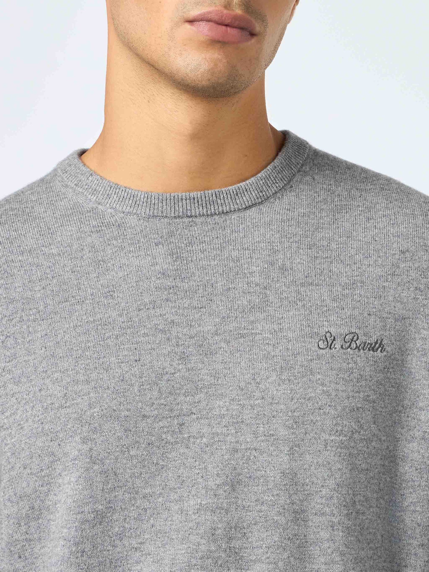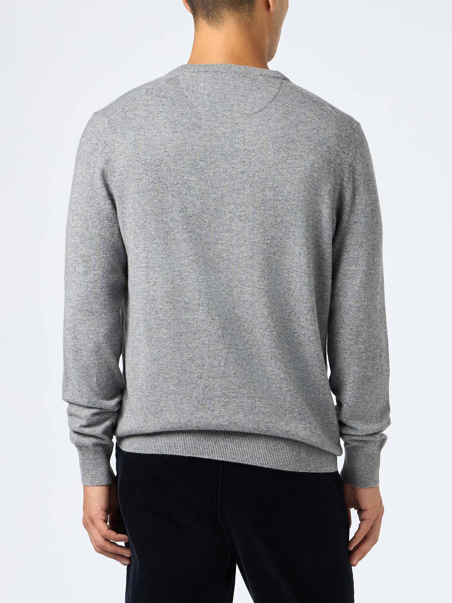 Grau meliert Herren Kaschmir-Mischpullover mit Rundhalsausschnitt Regent