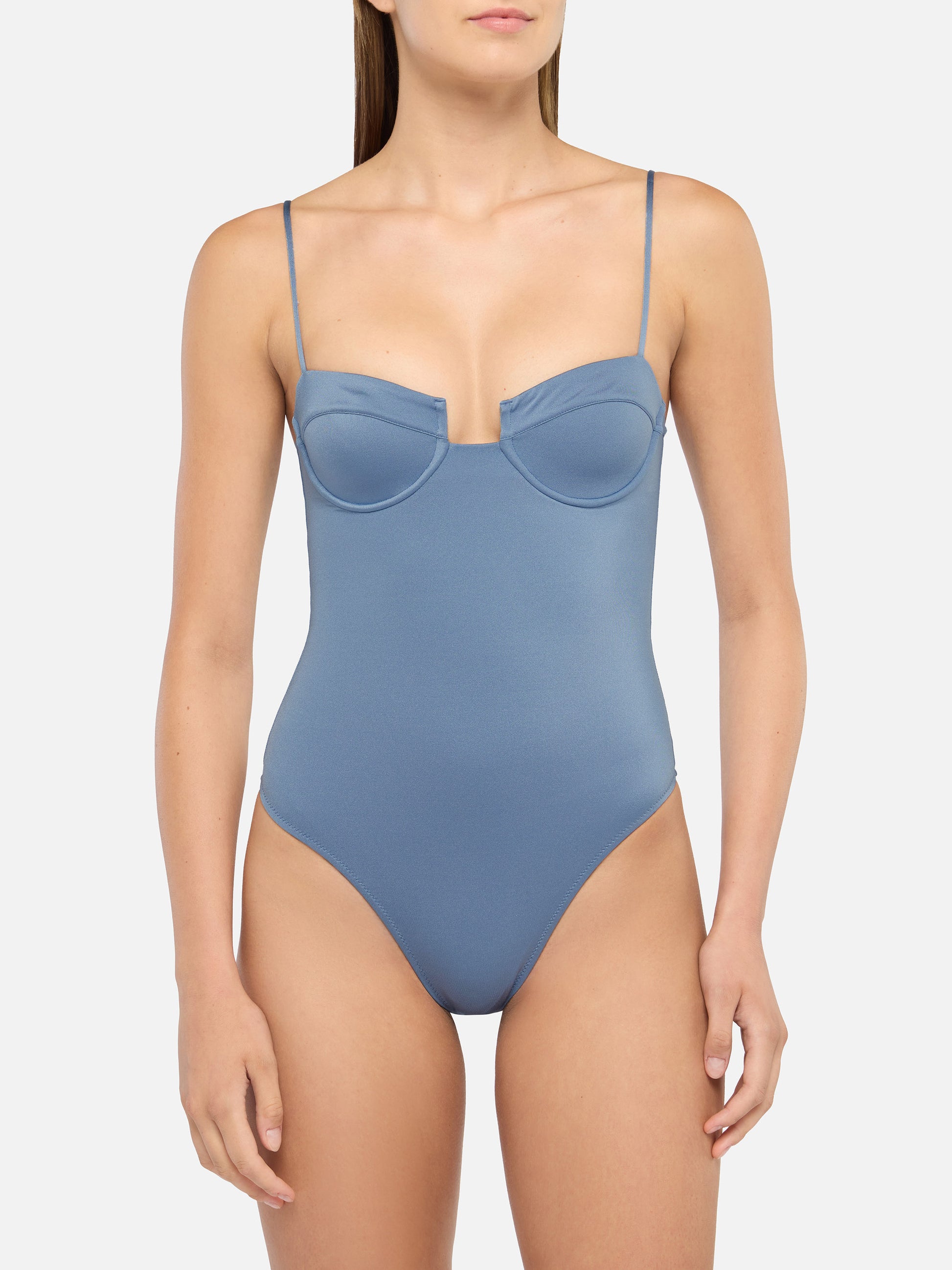 Medea schimmernder Avioblauer Bügel-Badeanzug