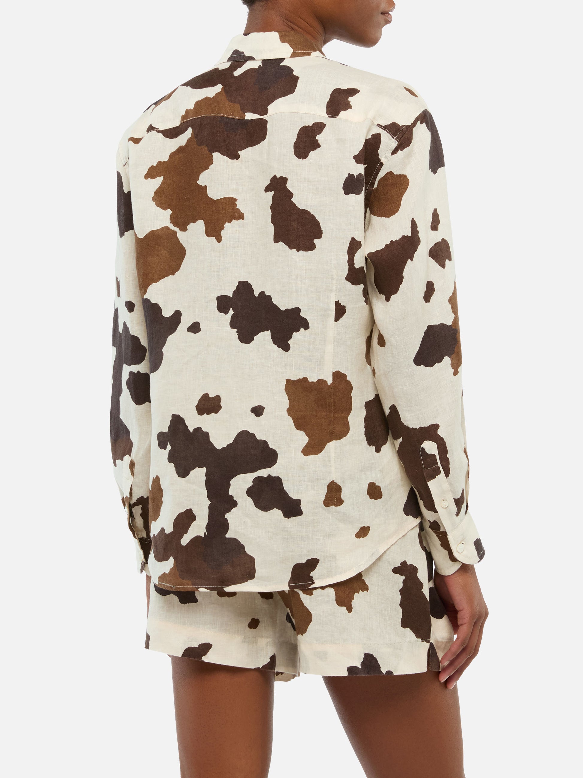 Meredith klassisches Leinenhemd mit Kuhfell-Print