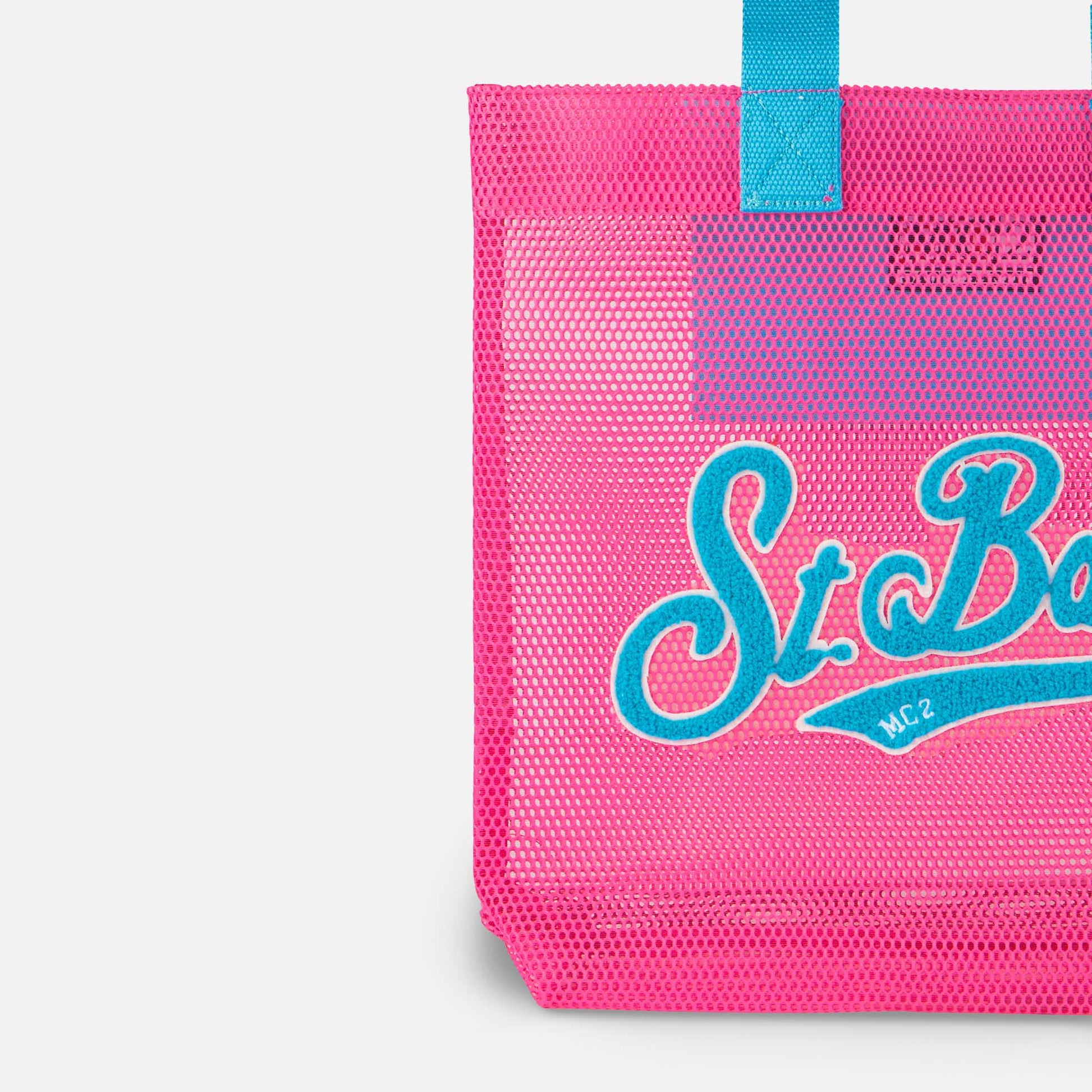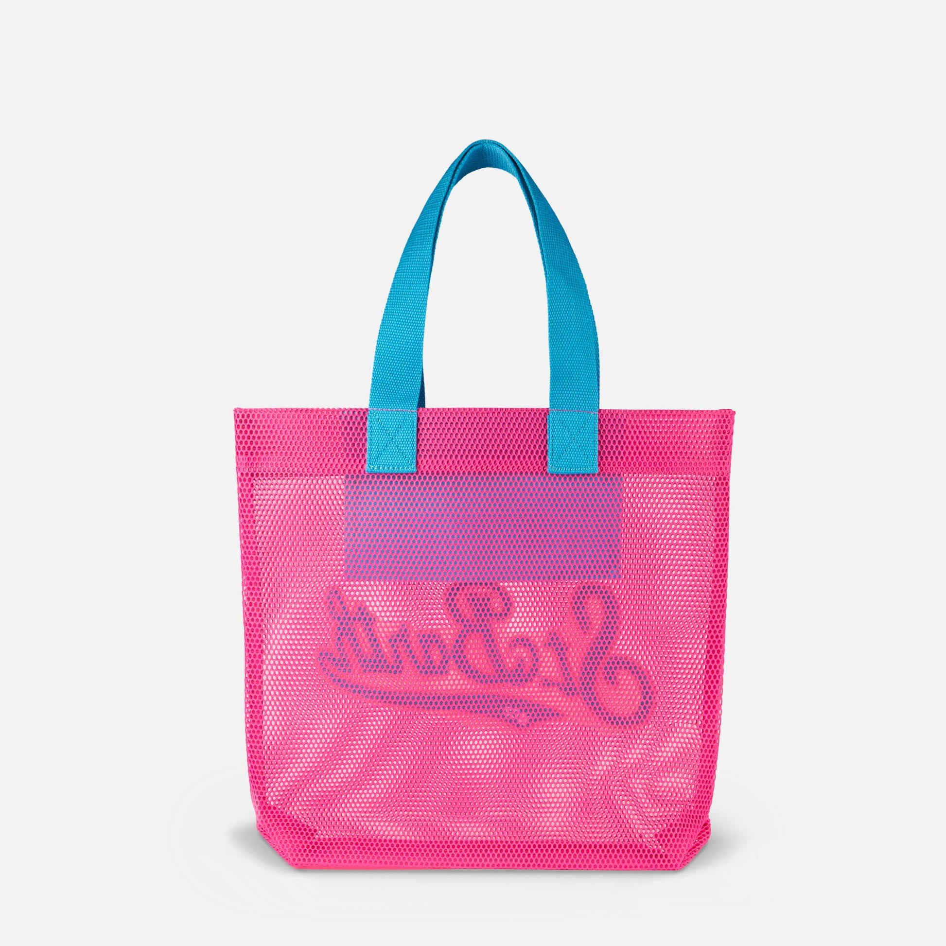 Fuchsiafarbene Einkaufstasche aus Mesh mit Frottee-Patch