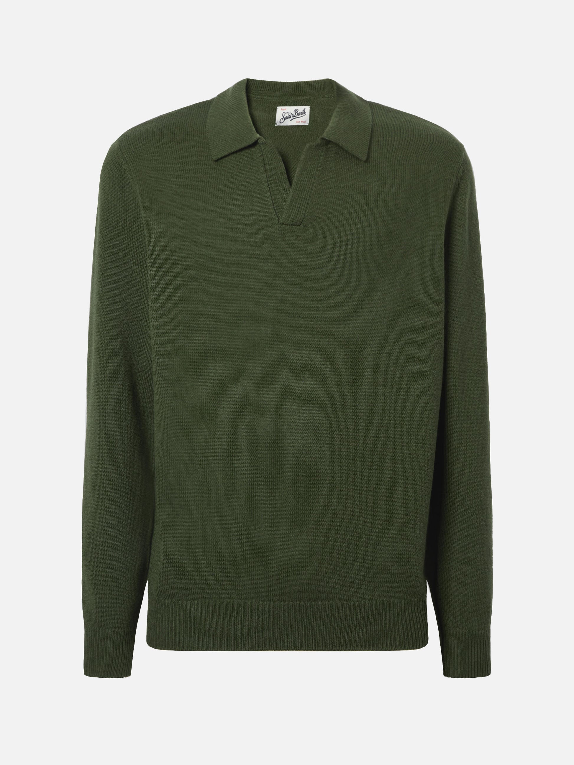 Military green wool knit polo Covent