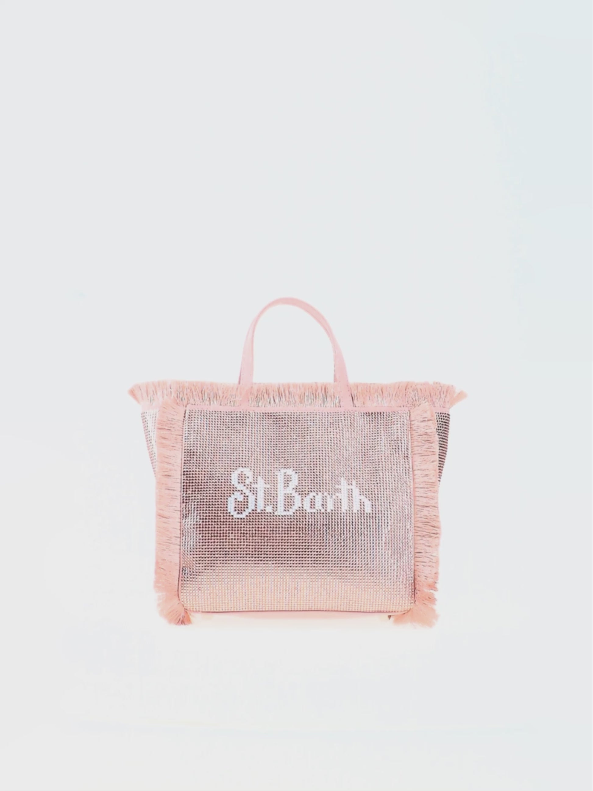 Mini-Vanity-Tasche mit Fransen und roségoldenen Strasssteinen