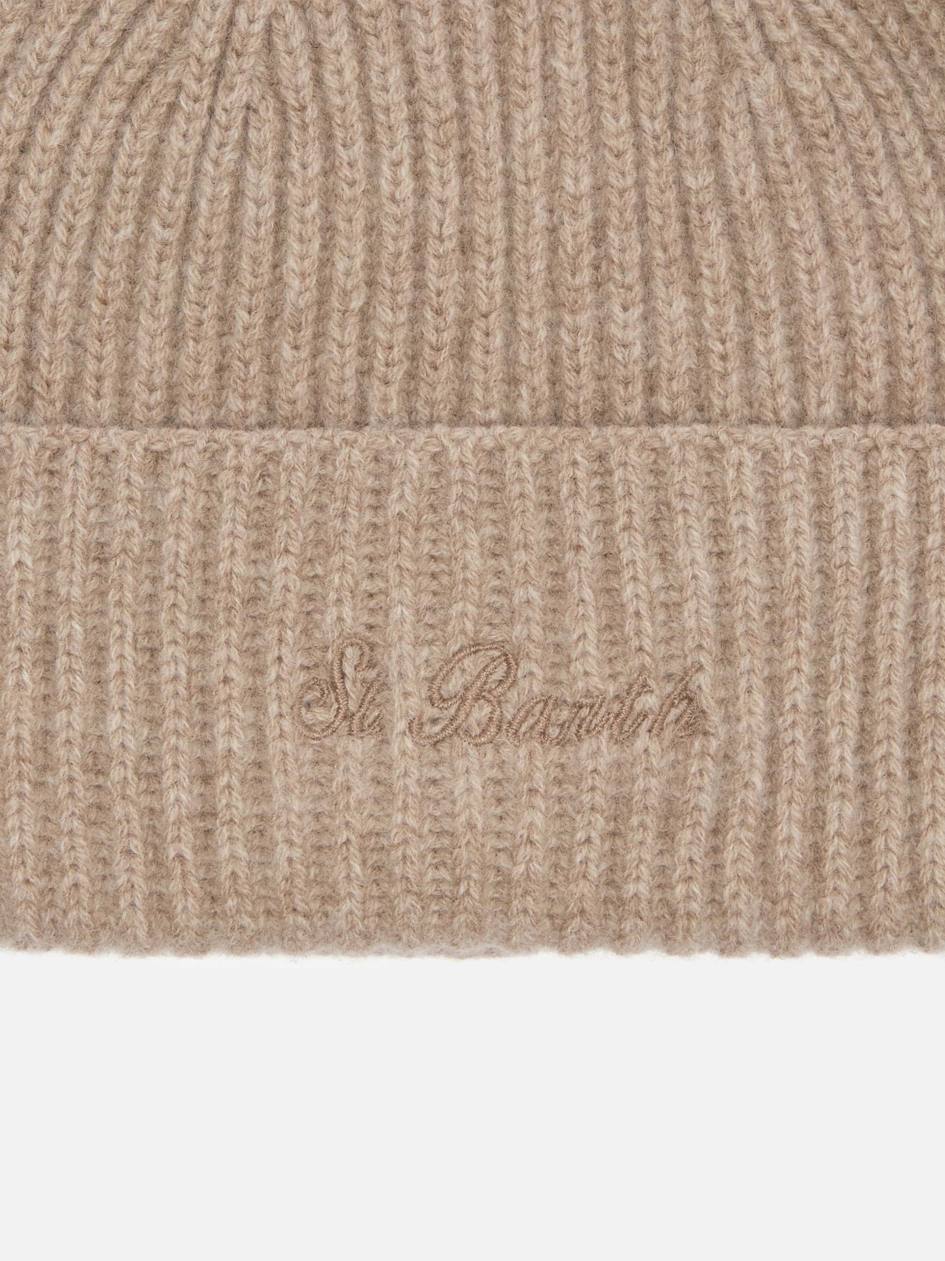 Moss Beanie in khaki ribbed knit with St. Barth embroidery