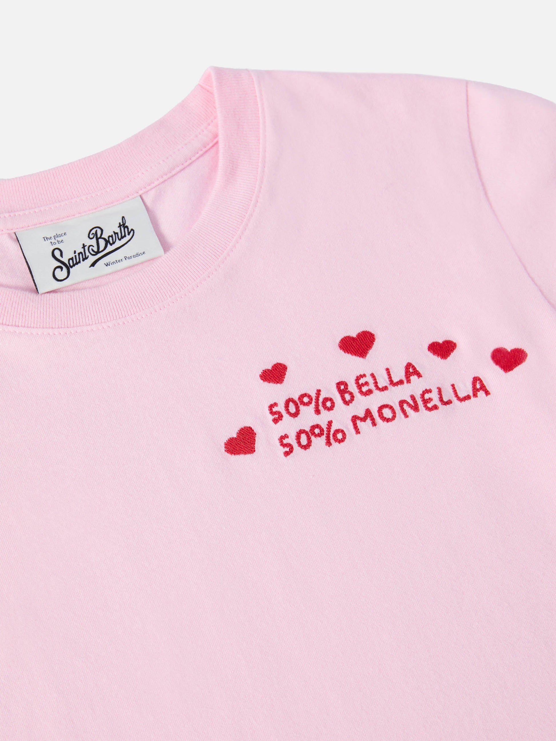 Penny long-sleeve cotton T-shirt in pink with Bella e Monella embroidery