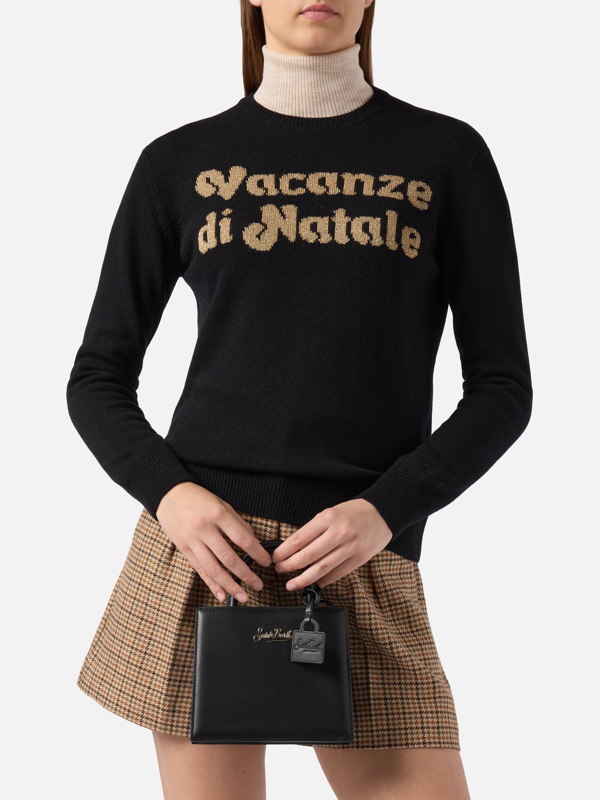New Queen-Pullover aus Kaschmirmischung in Schwarz mit „Scelgo sempre quello sbagliato“-Stickerei