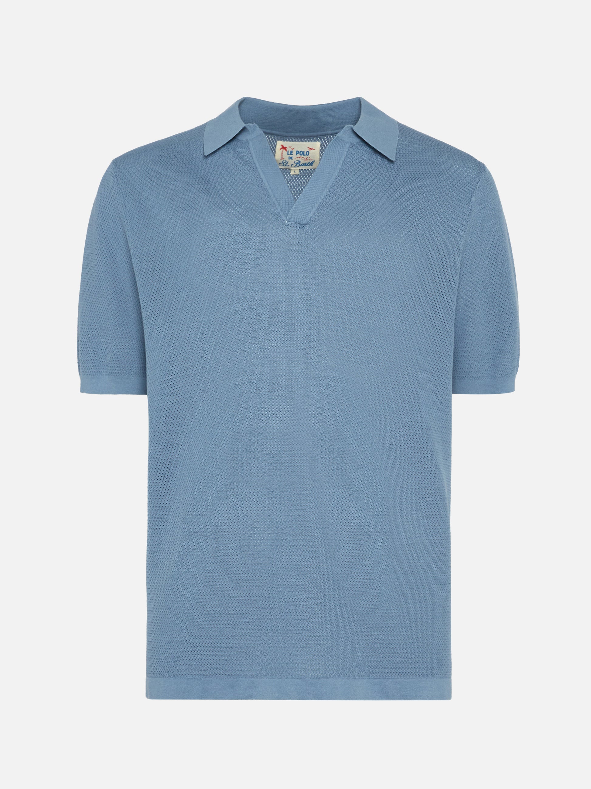 Sloan dusty blue mesh buttonless knitted polo shirt