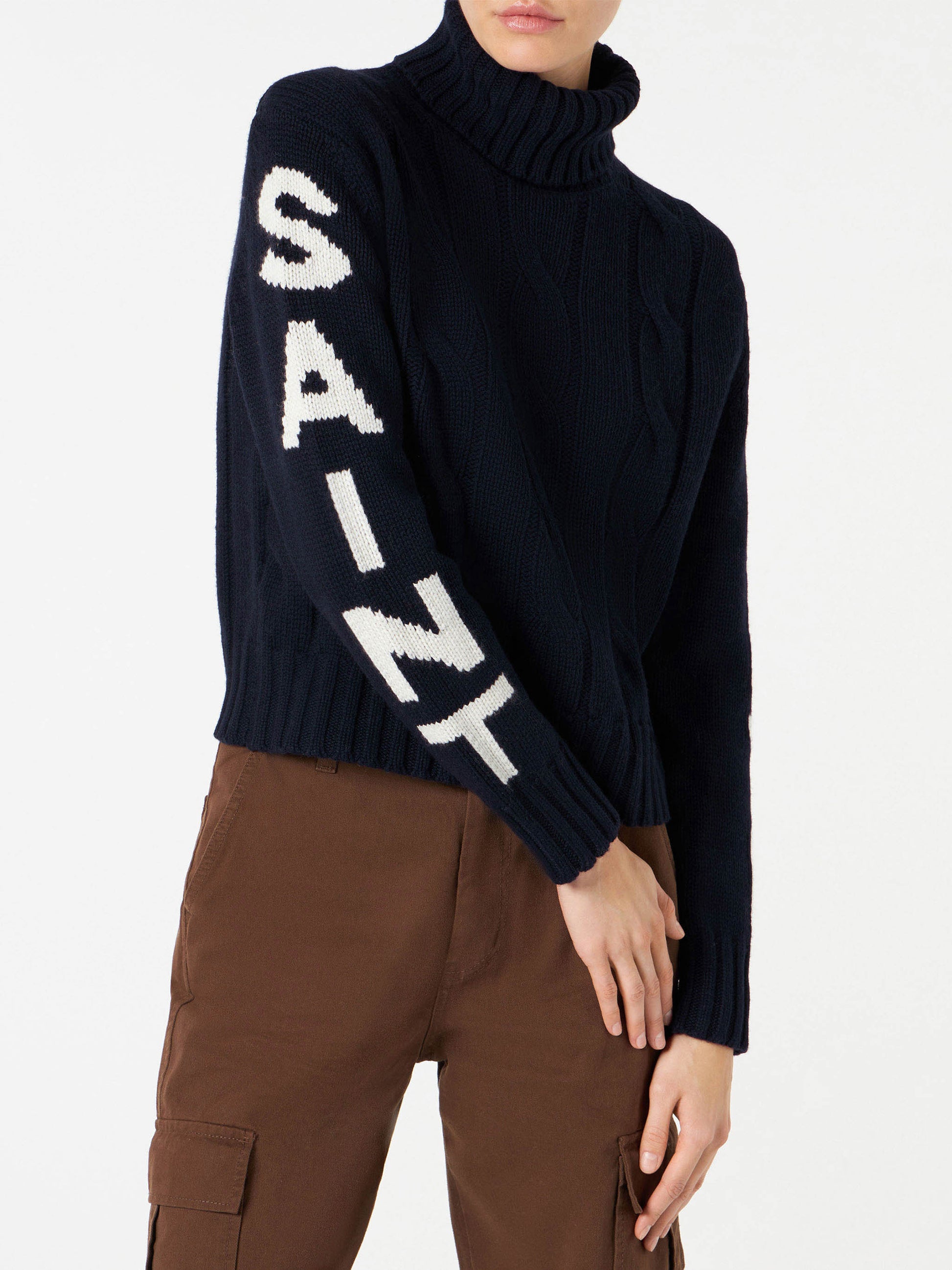 Rollkragenpullover mit Zopfmuster von Saint Barth