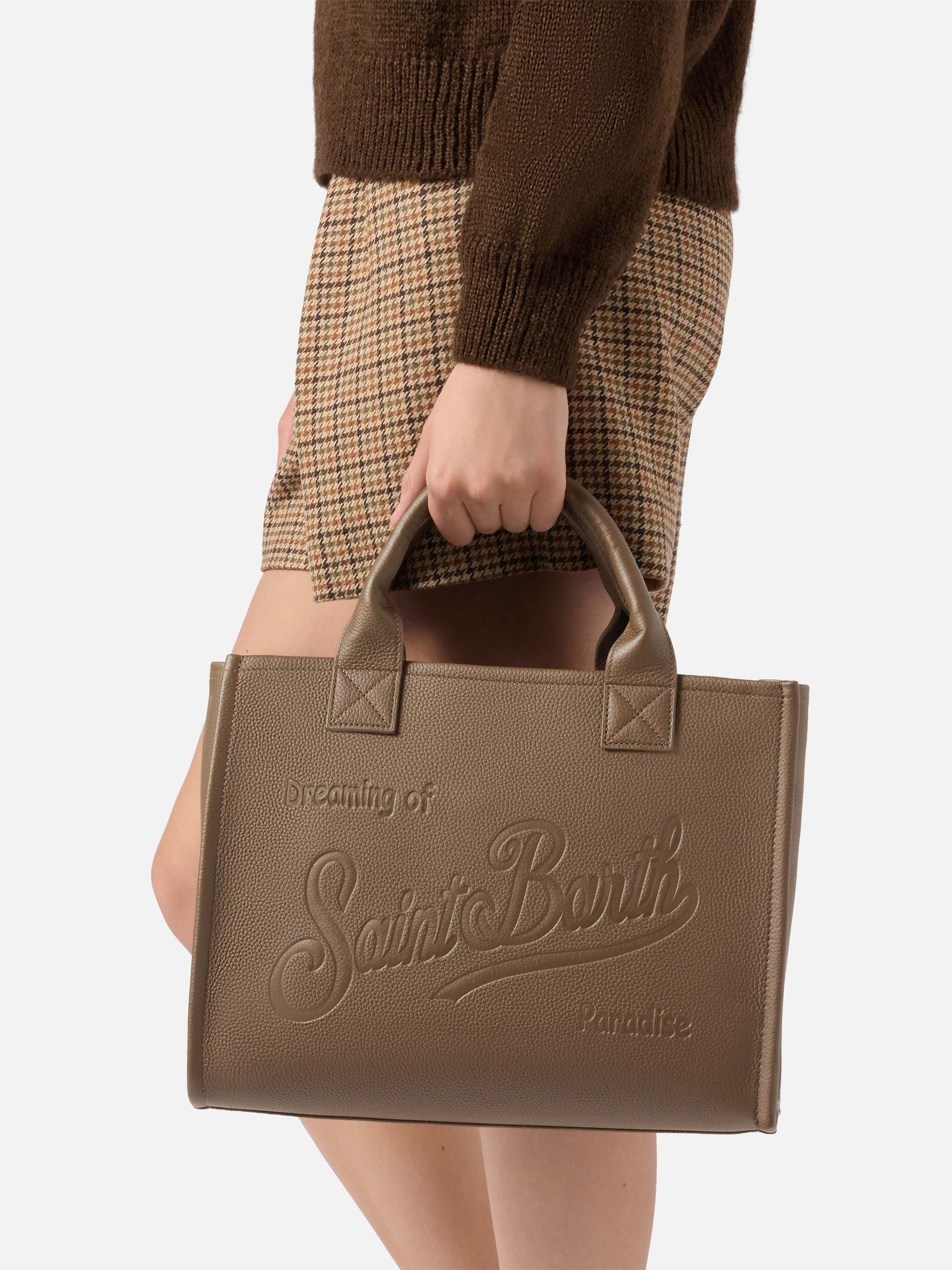 Vanity Bag Large Shoulder Bag in brown hammered leather