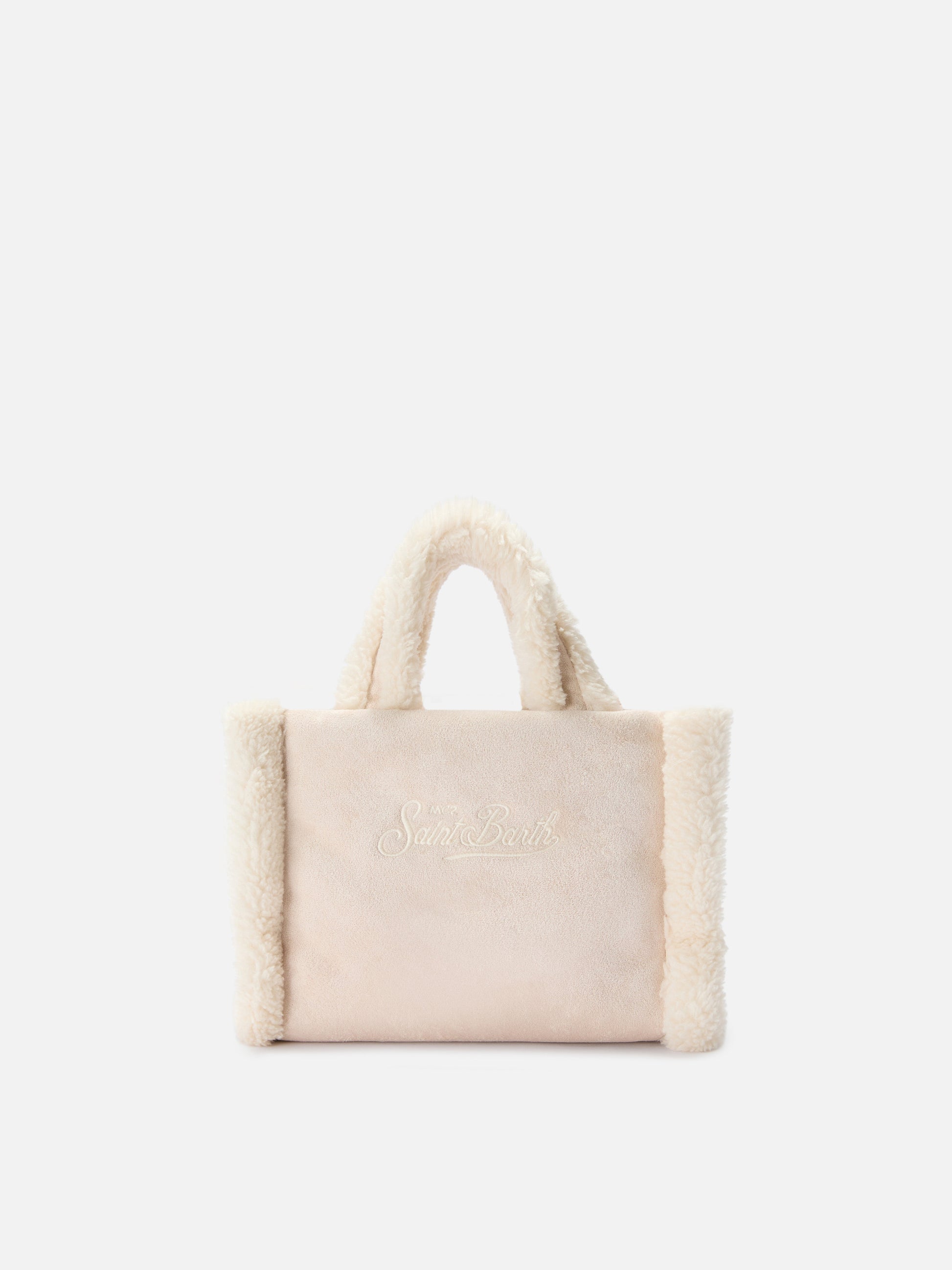 Vanity Mini Shearling Soft Handbag in beige shearling