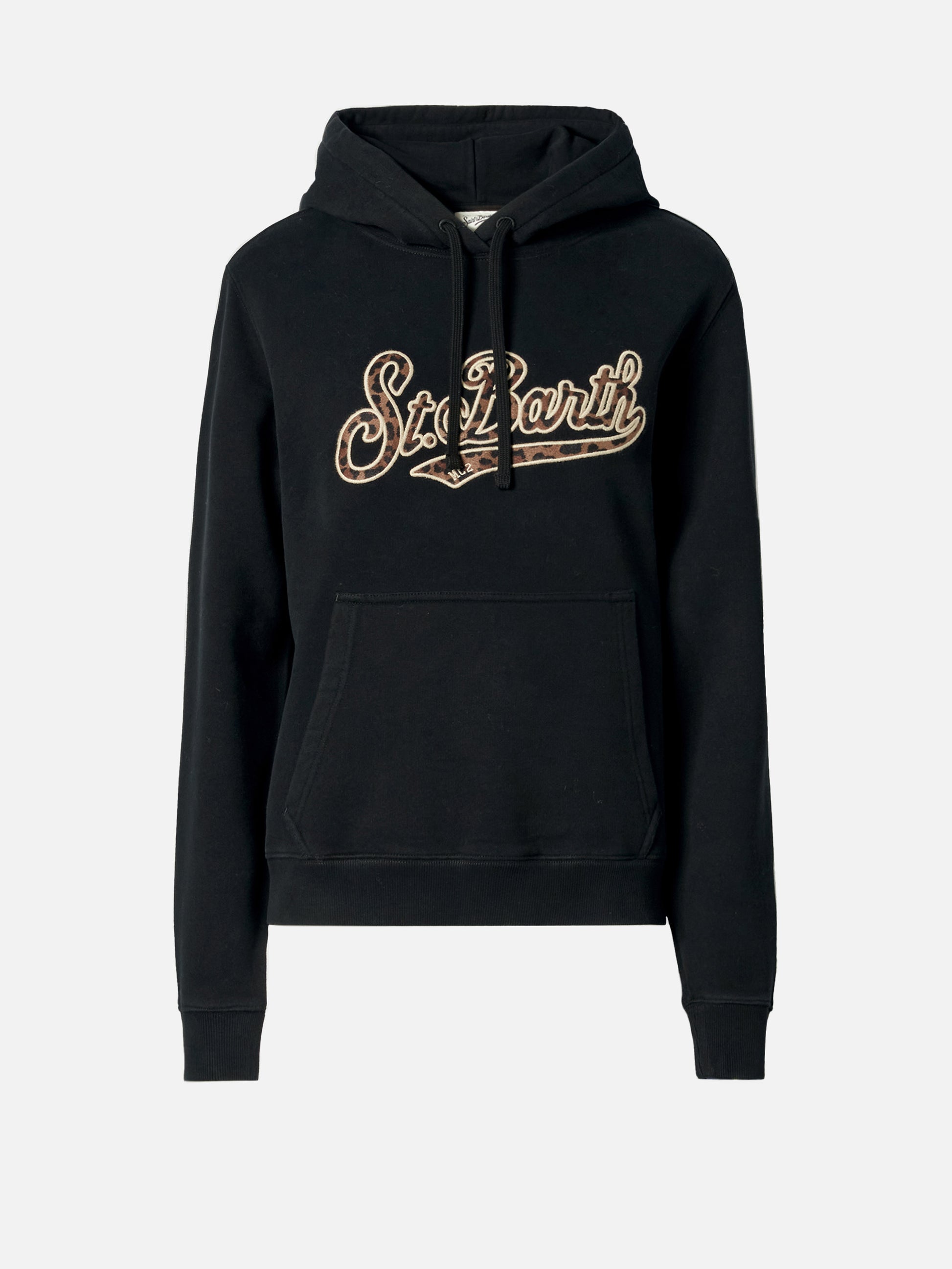 Schwarzer Virginia-Baumwollhoodie mit St. Barth-Stickerei im Animal-Print.