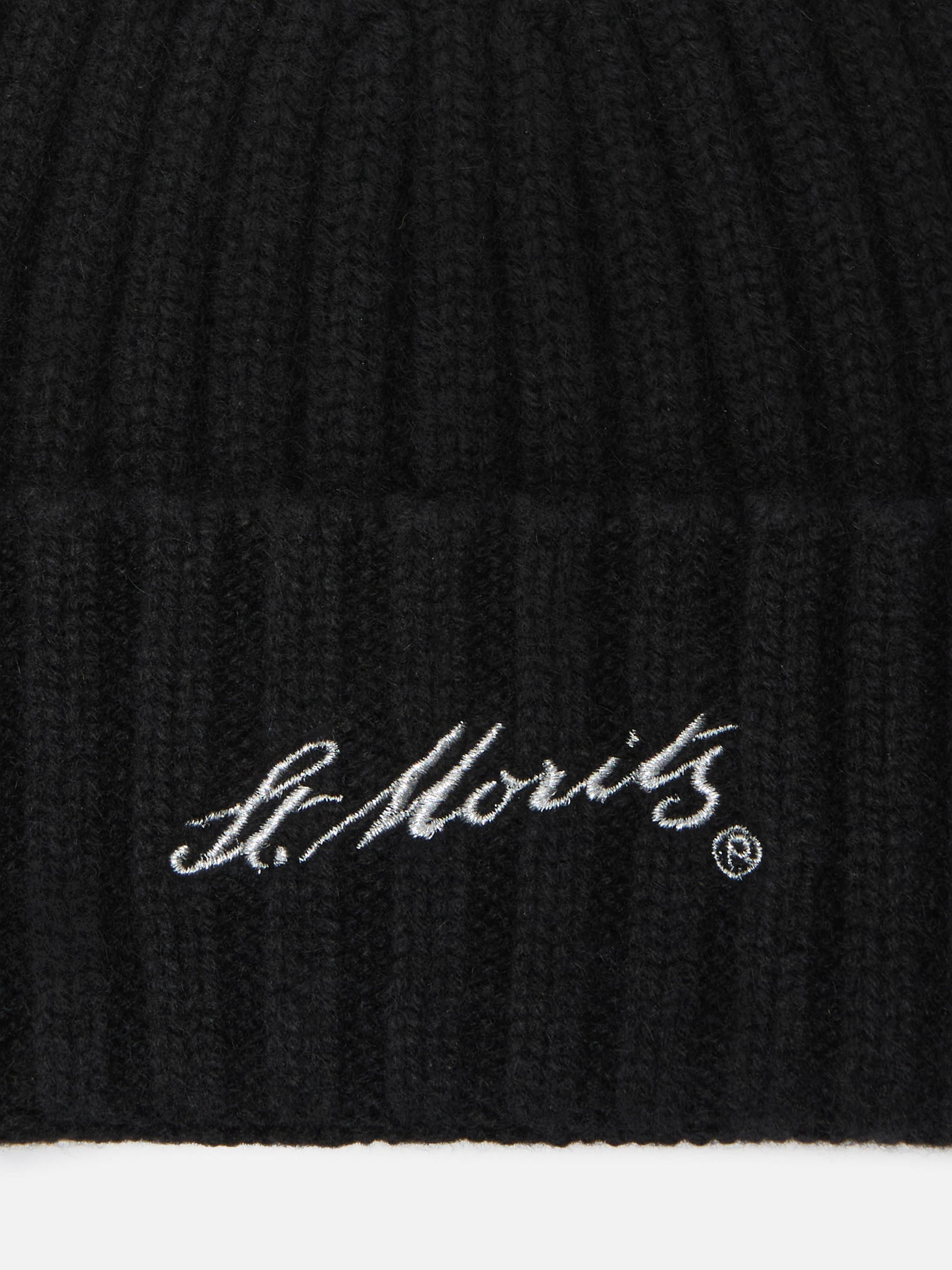 Wengen-Mütze aus schwarzem Kaschmir mit St. Moritz-Stickerei