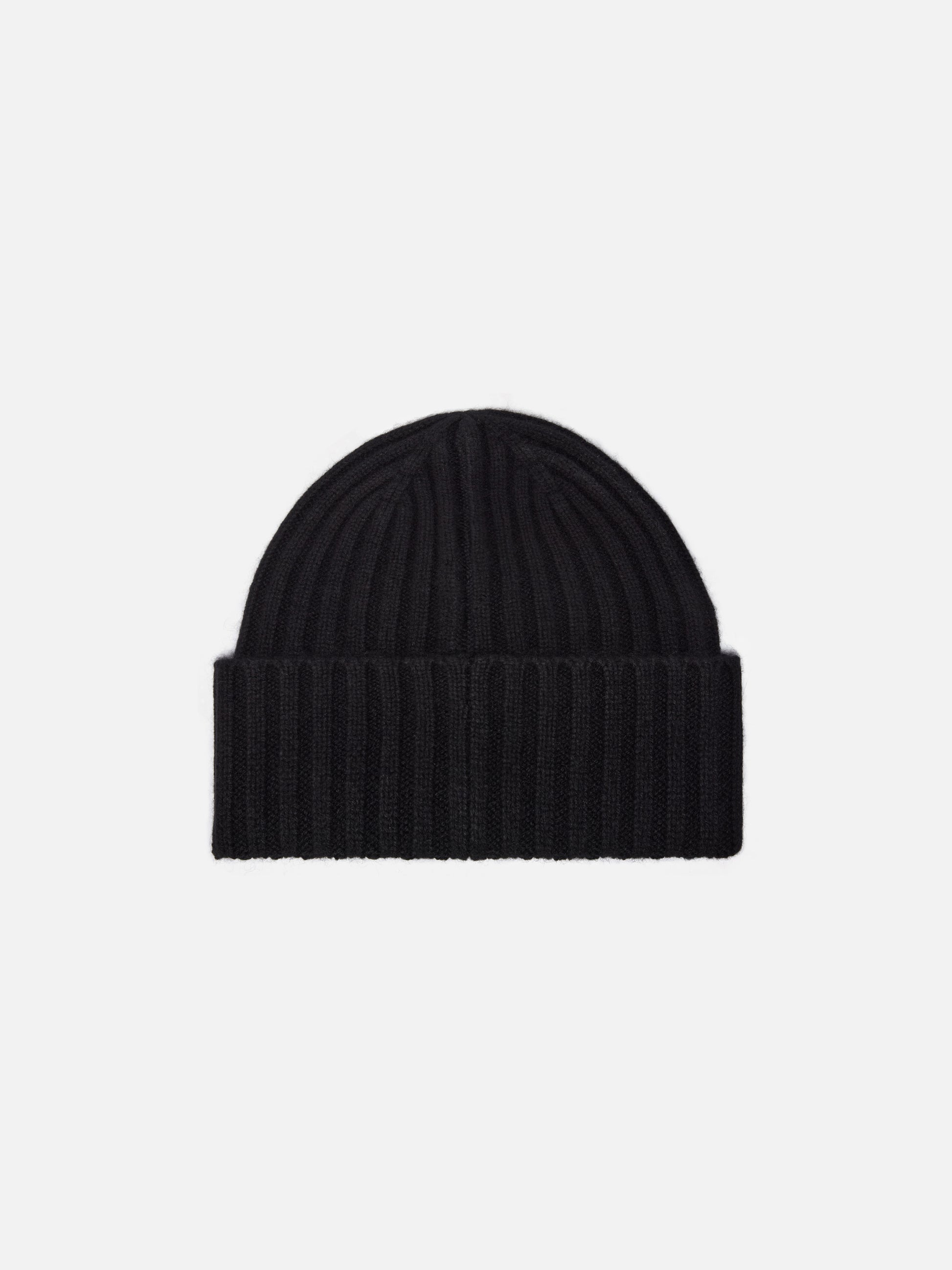 Wengen-Mütze aus schwarzem Kaschmir mit St.-Barth-Stickerei am Umschlag