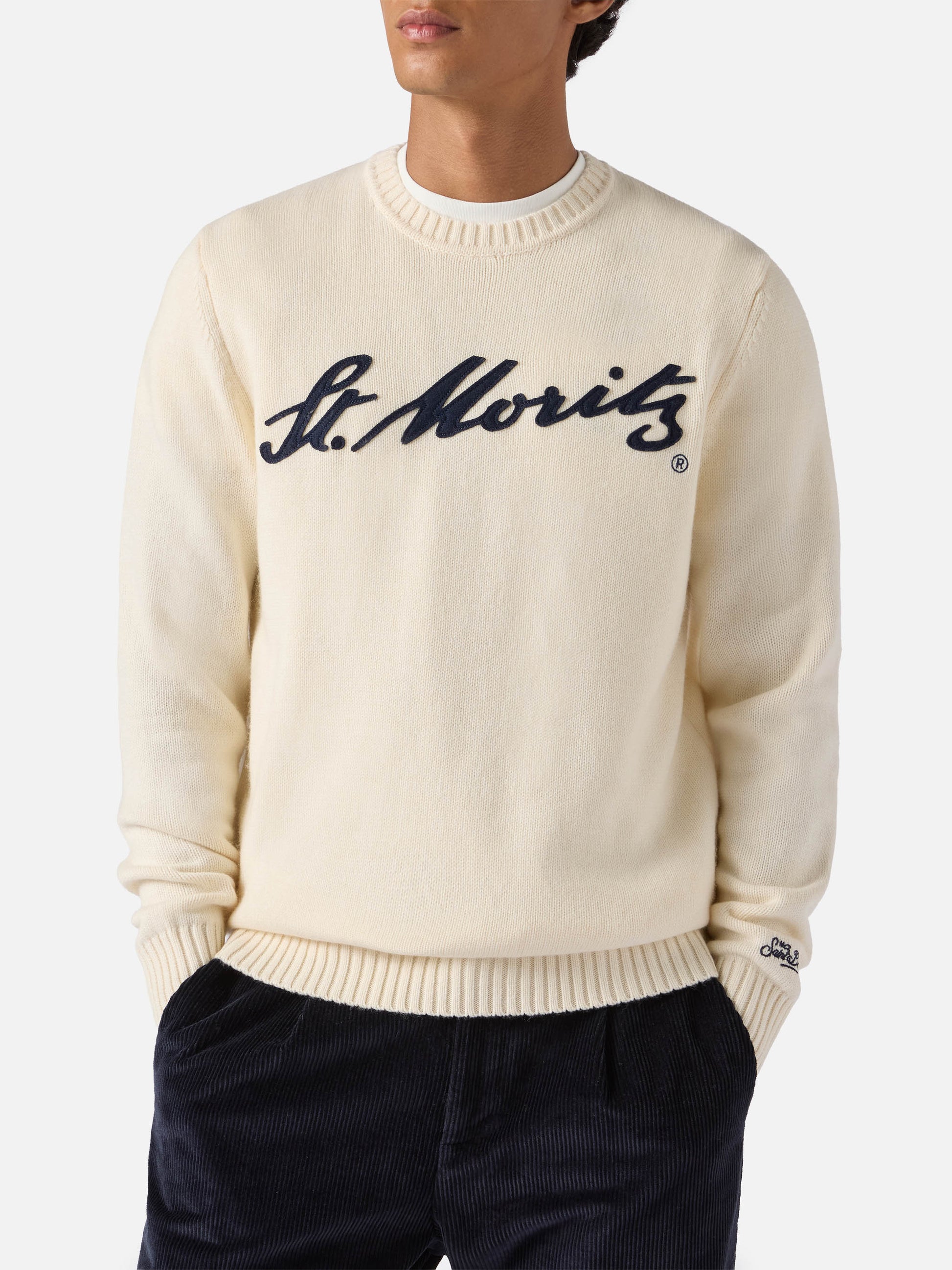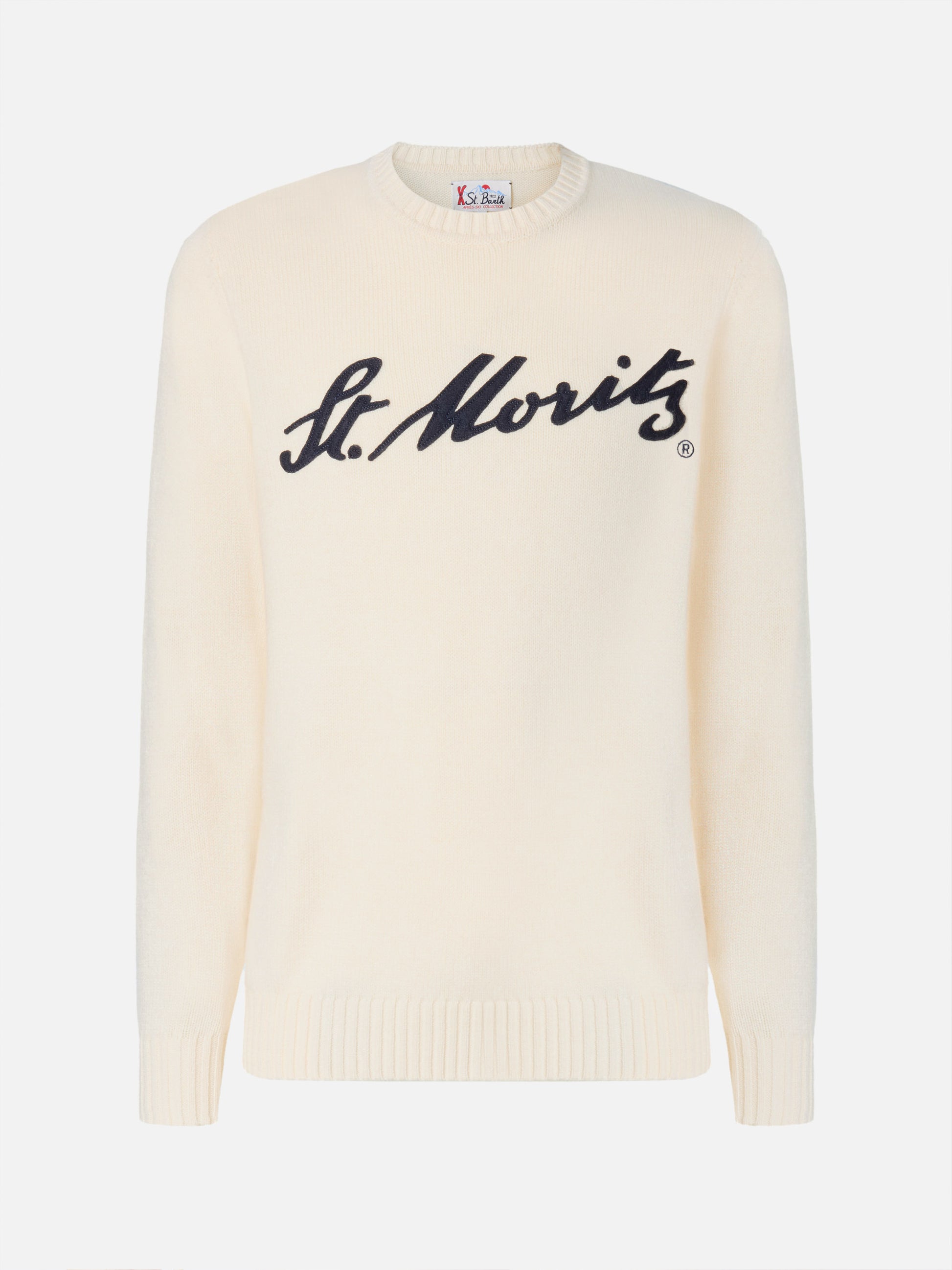 White Bombardino Light sweater with St. Moritz jacquard | ST. MORITZ TOP OF THE WORLD SPECIAL EDITION
