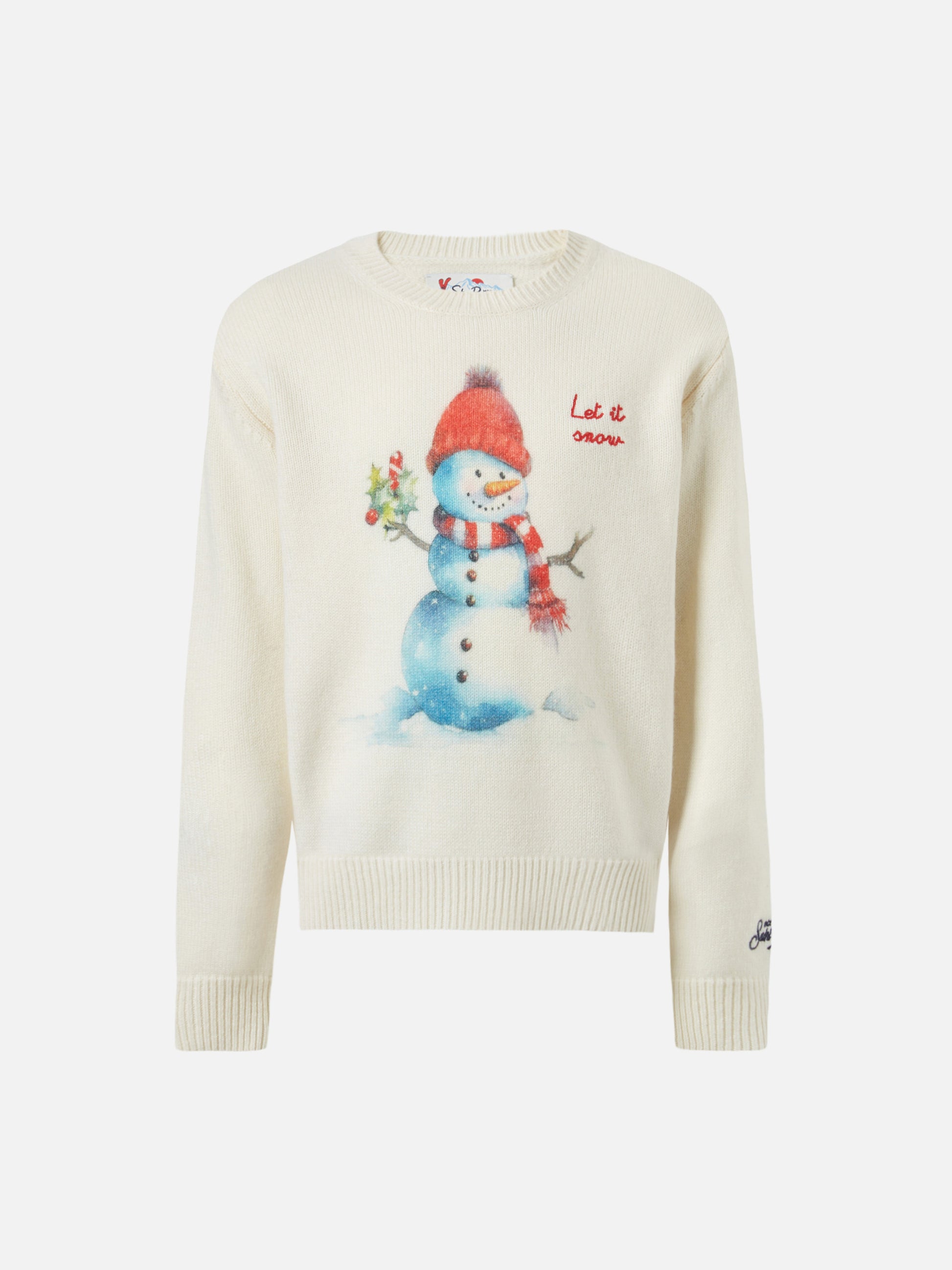 Weißer Douglas-Rundhalspullover mit „Let it snow“-Stickerei