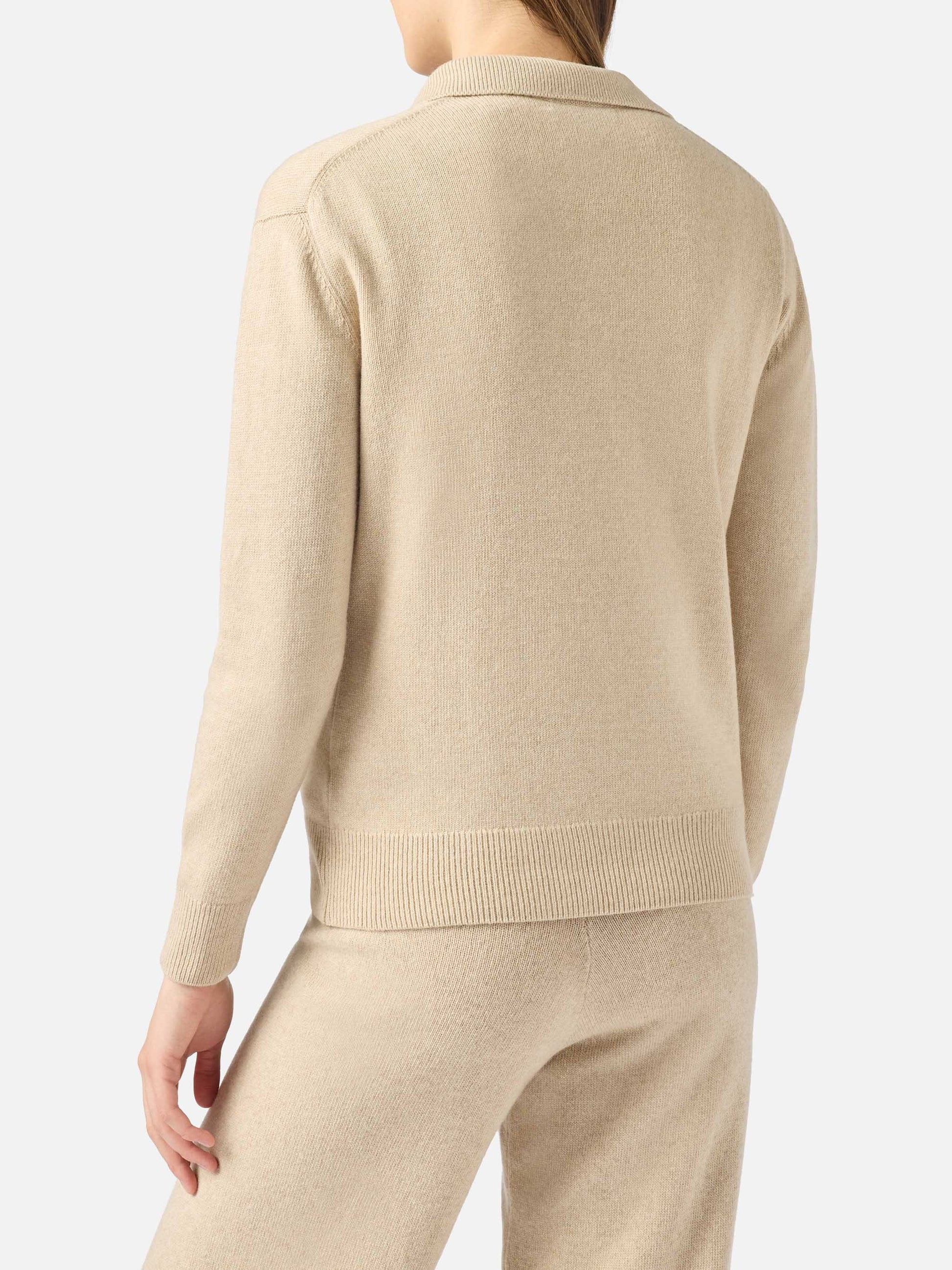 Beigefarbener Damenpullover Eze aus Kaschmirmischung mit Polokragen
