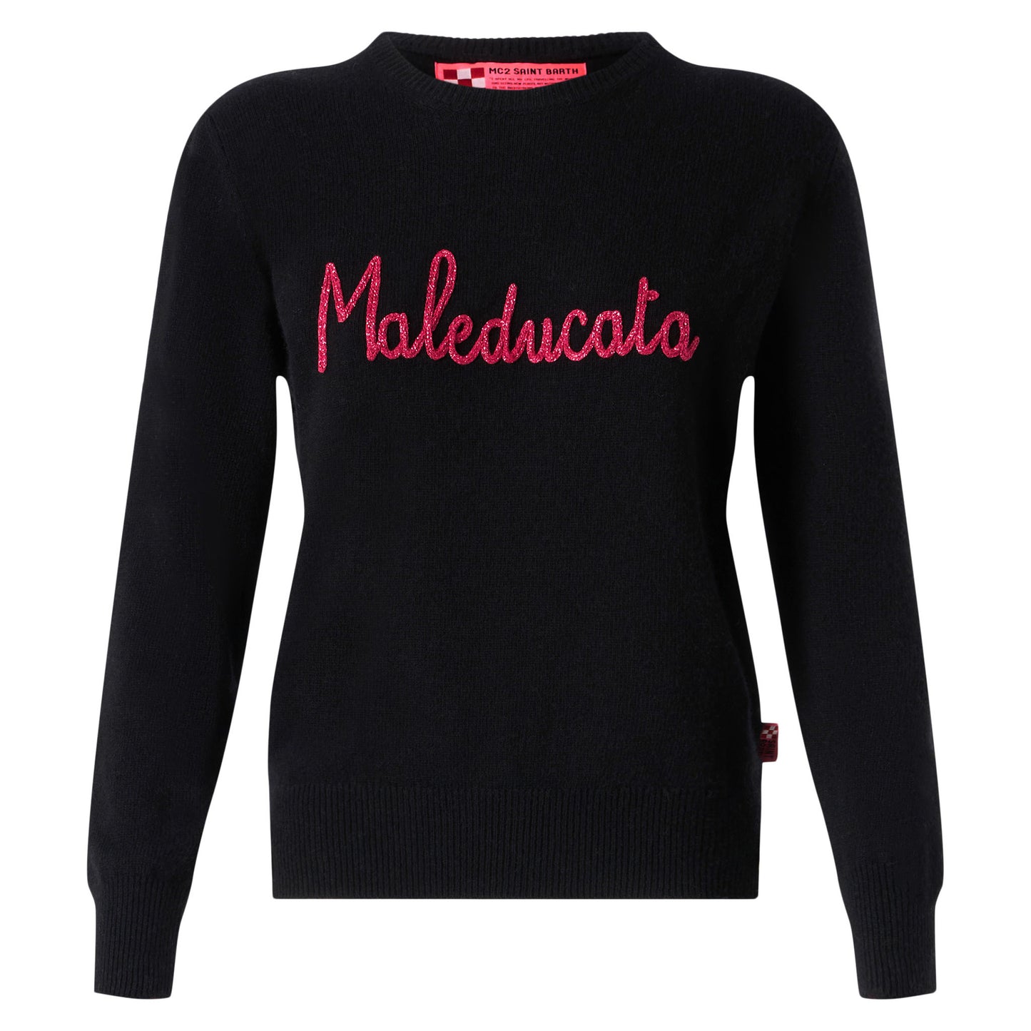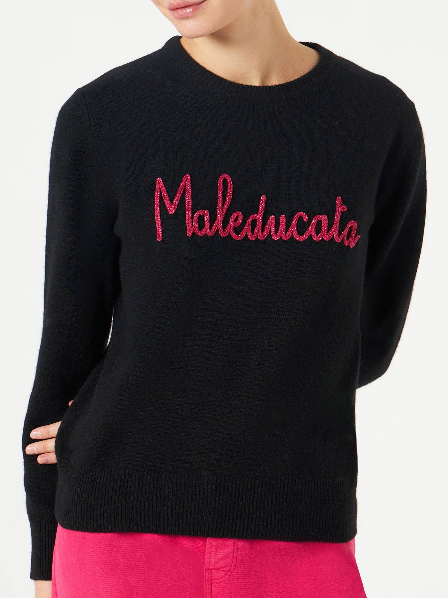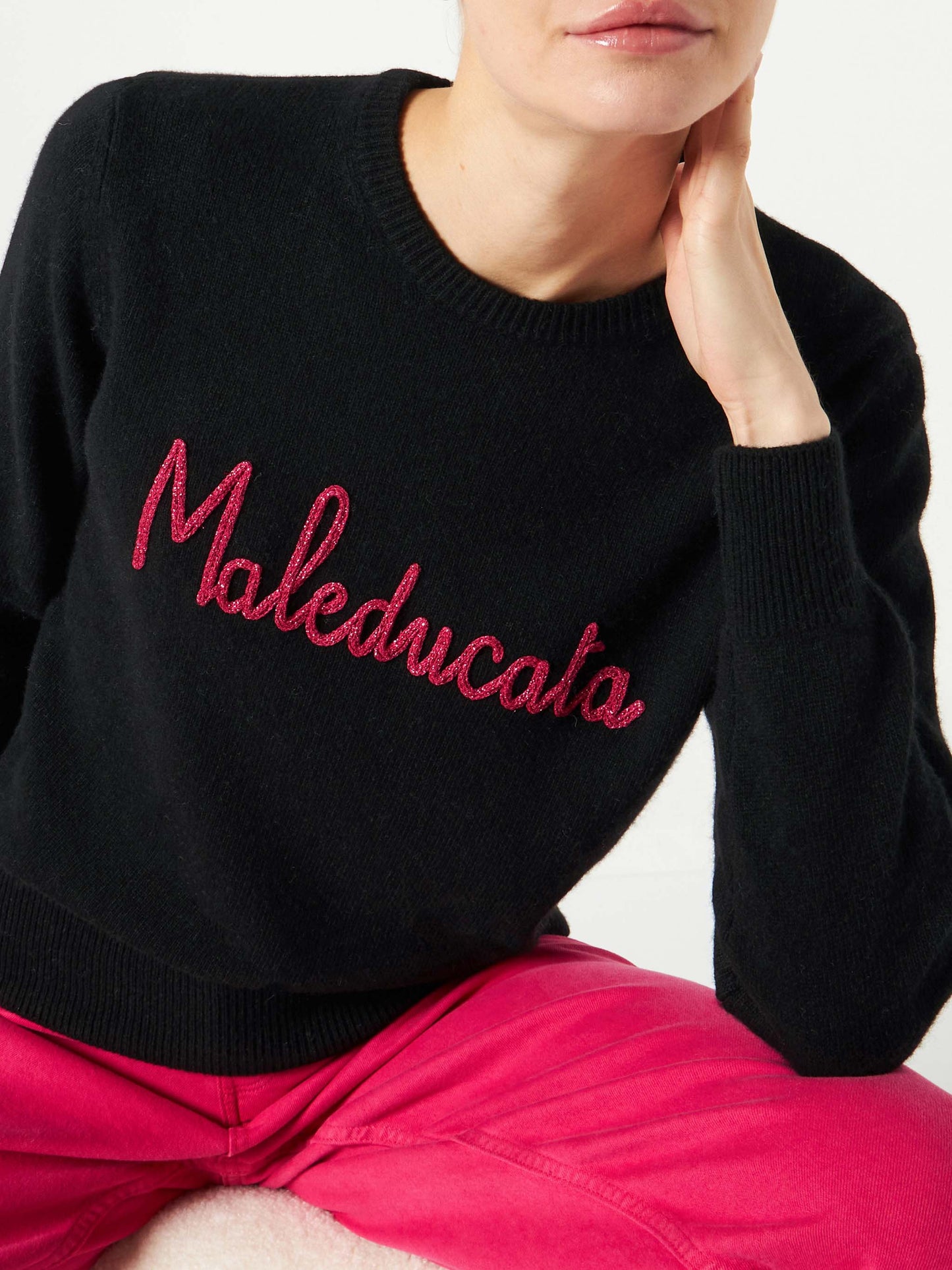 Schwarzer Damenpullover mit Maleducata Lurex-Stickerei