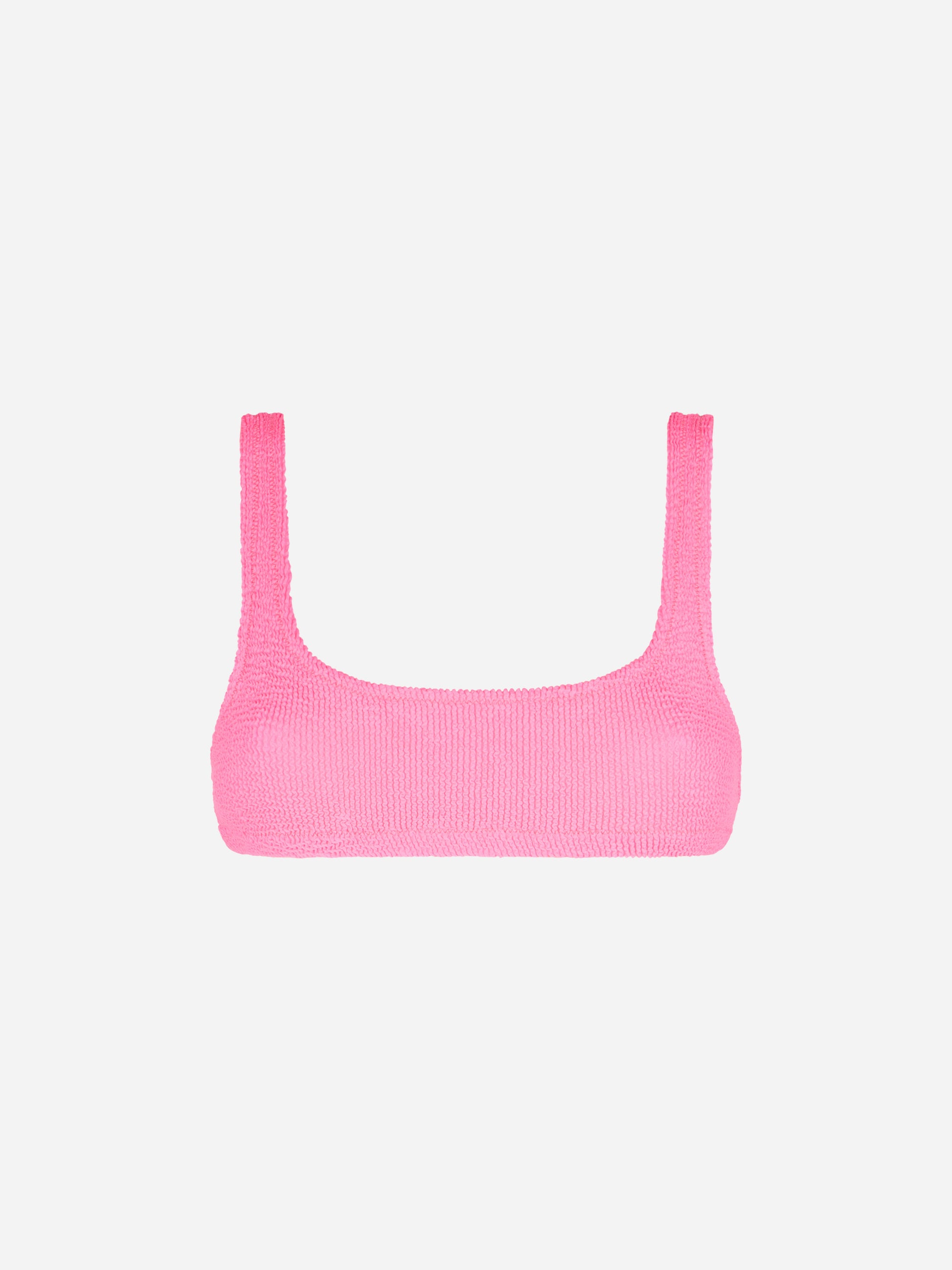 Damen-Badeanzug in Fluo-Rosa mit Crinkle-Bralette-Oberteil