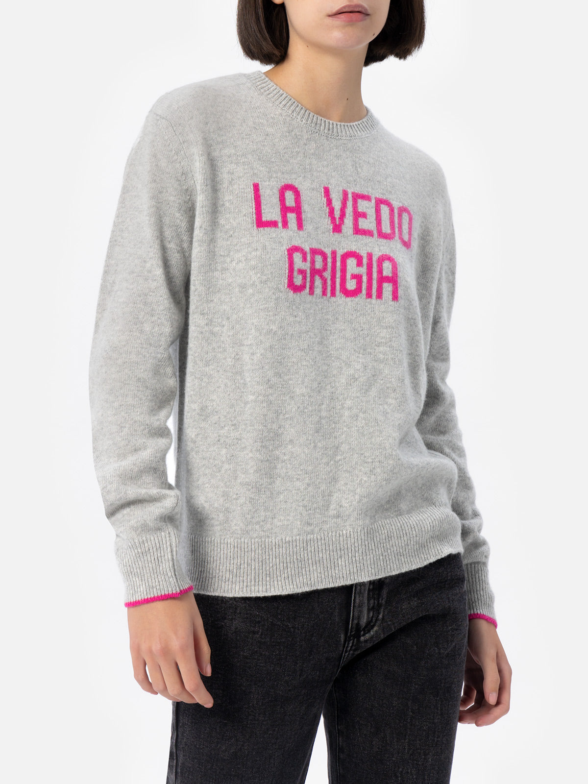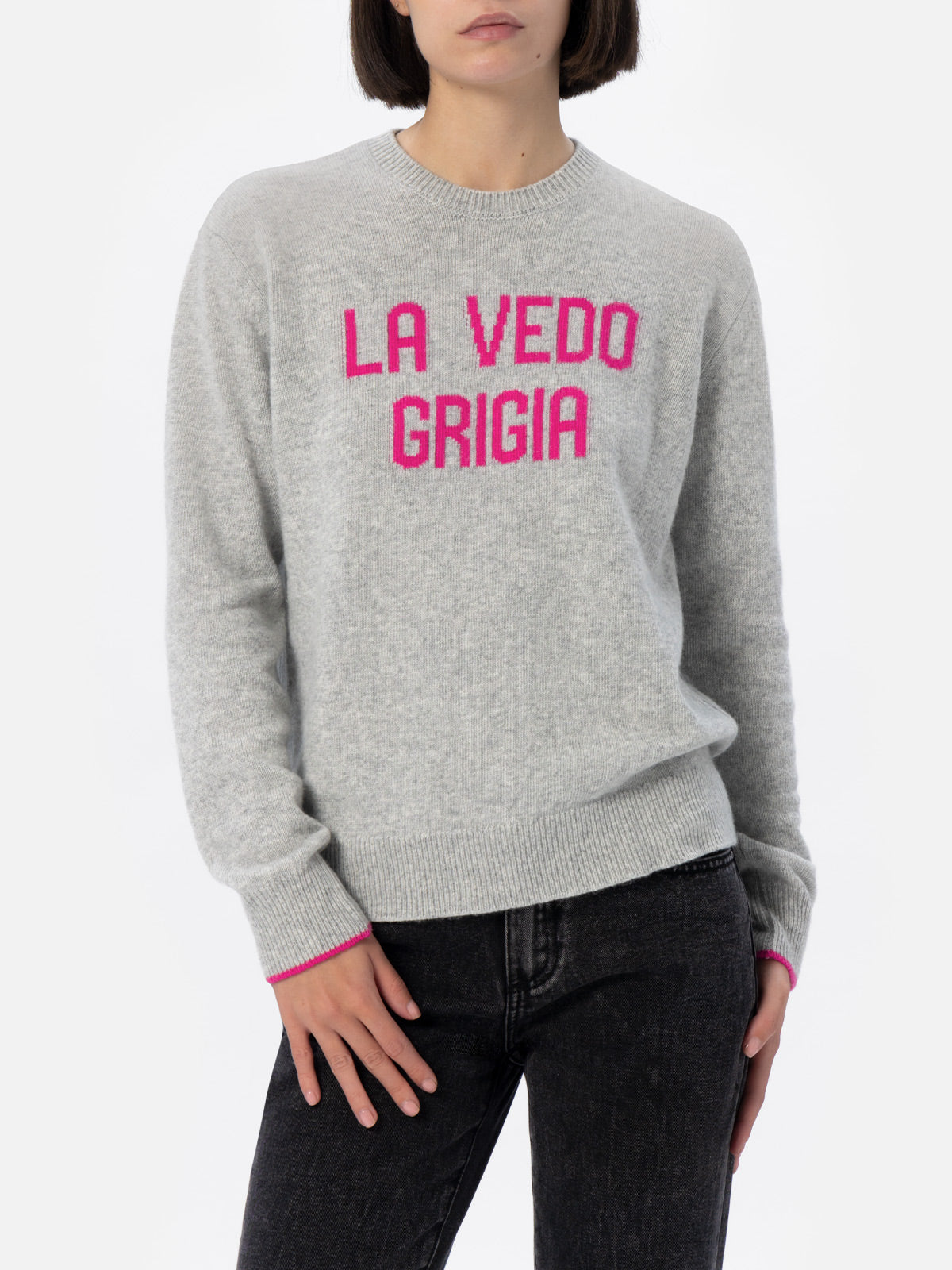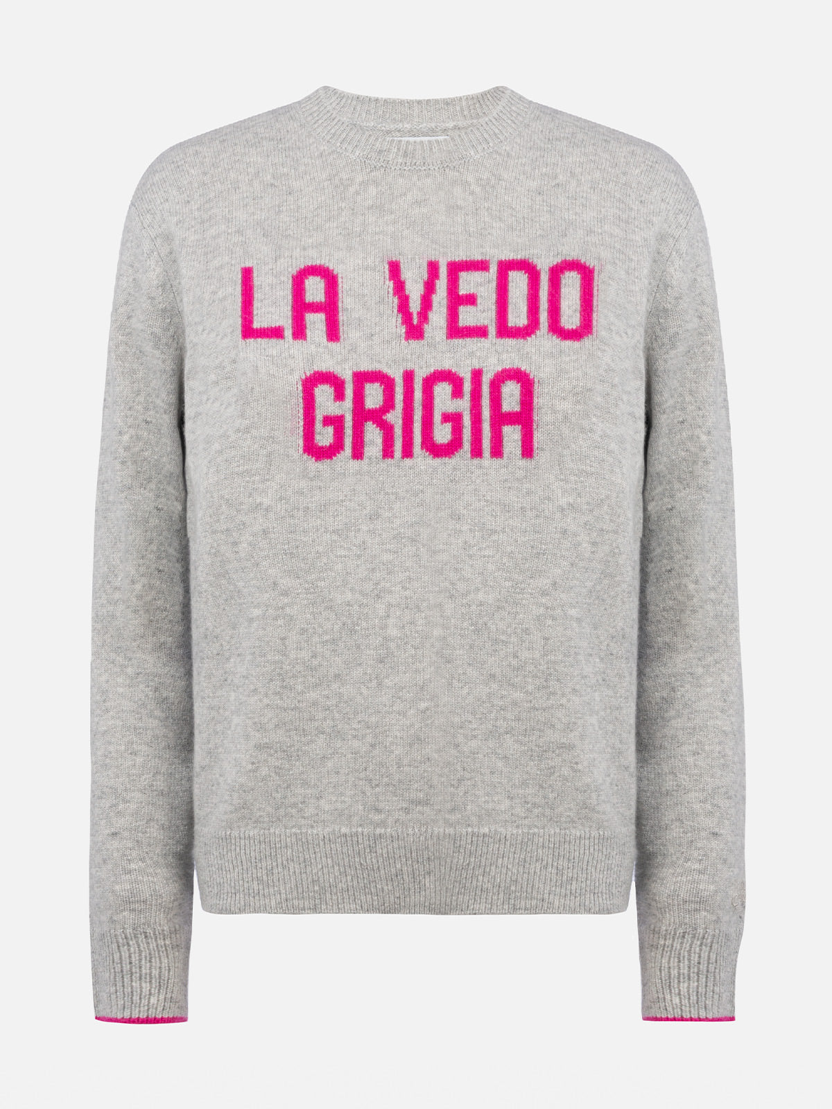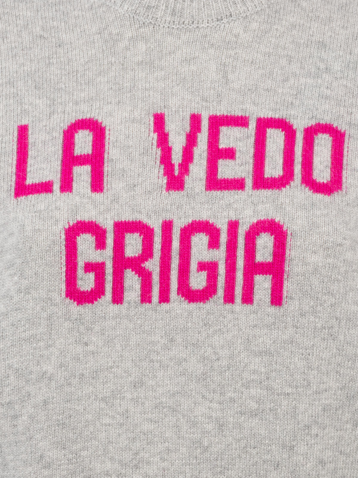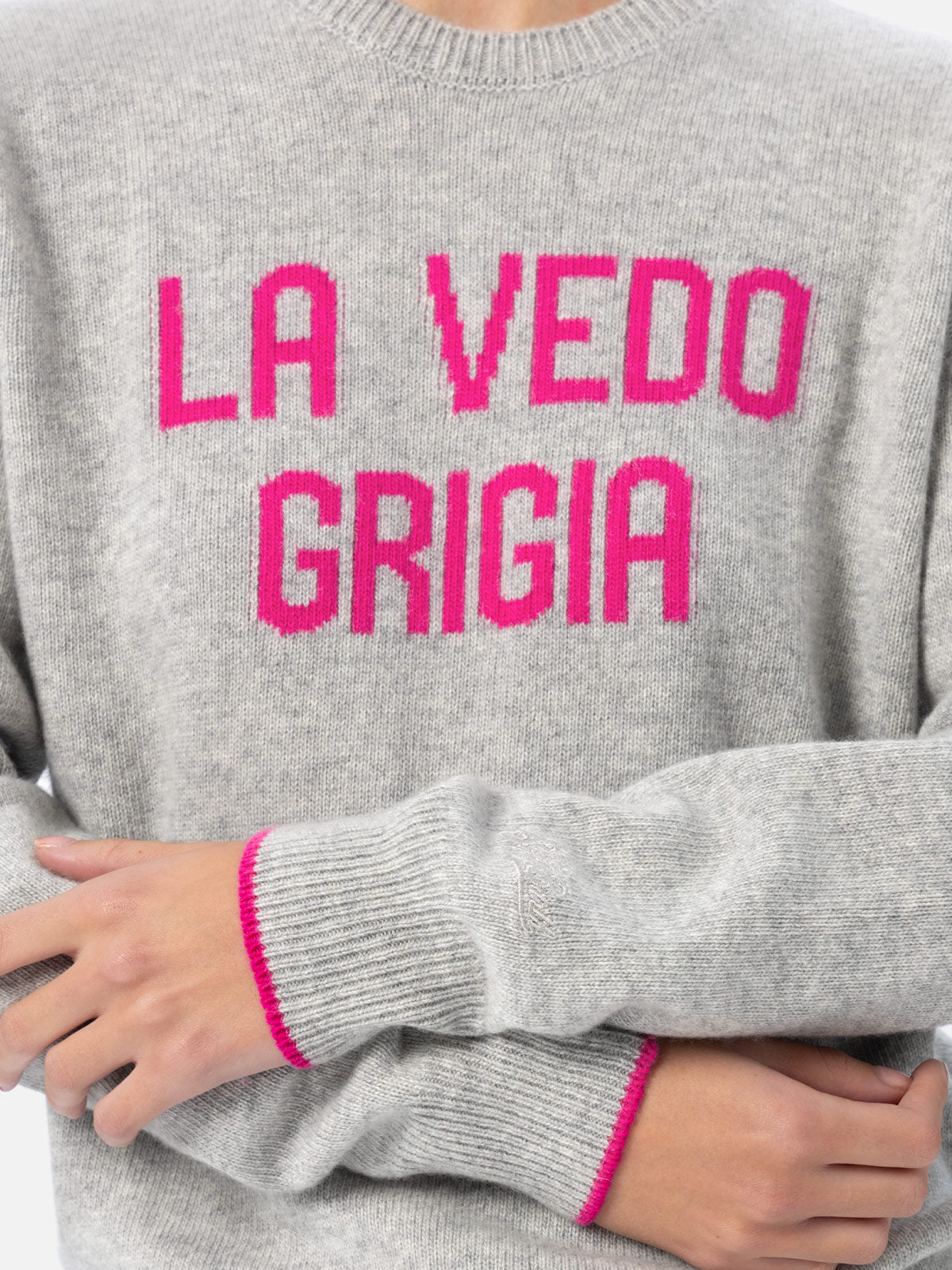 Grauer Damenpullover New Queen mit La vedo grigia-Aufdruck