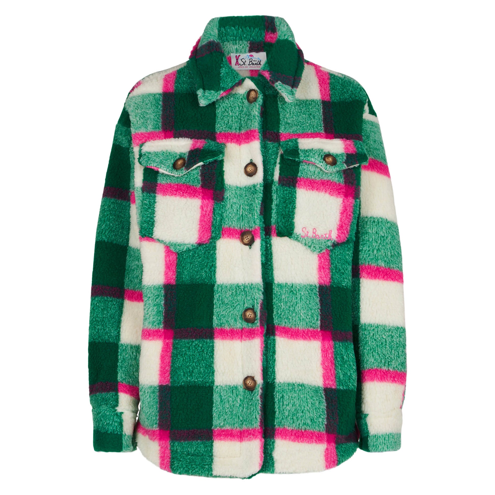 Damen-Sherpa-Overshirt mit Schottenmuster