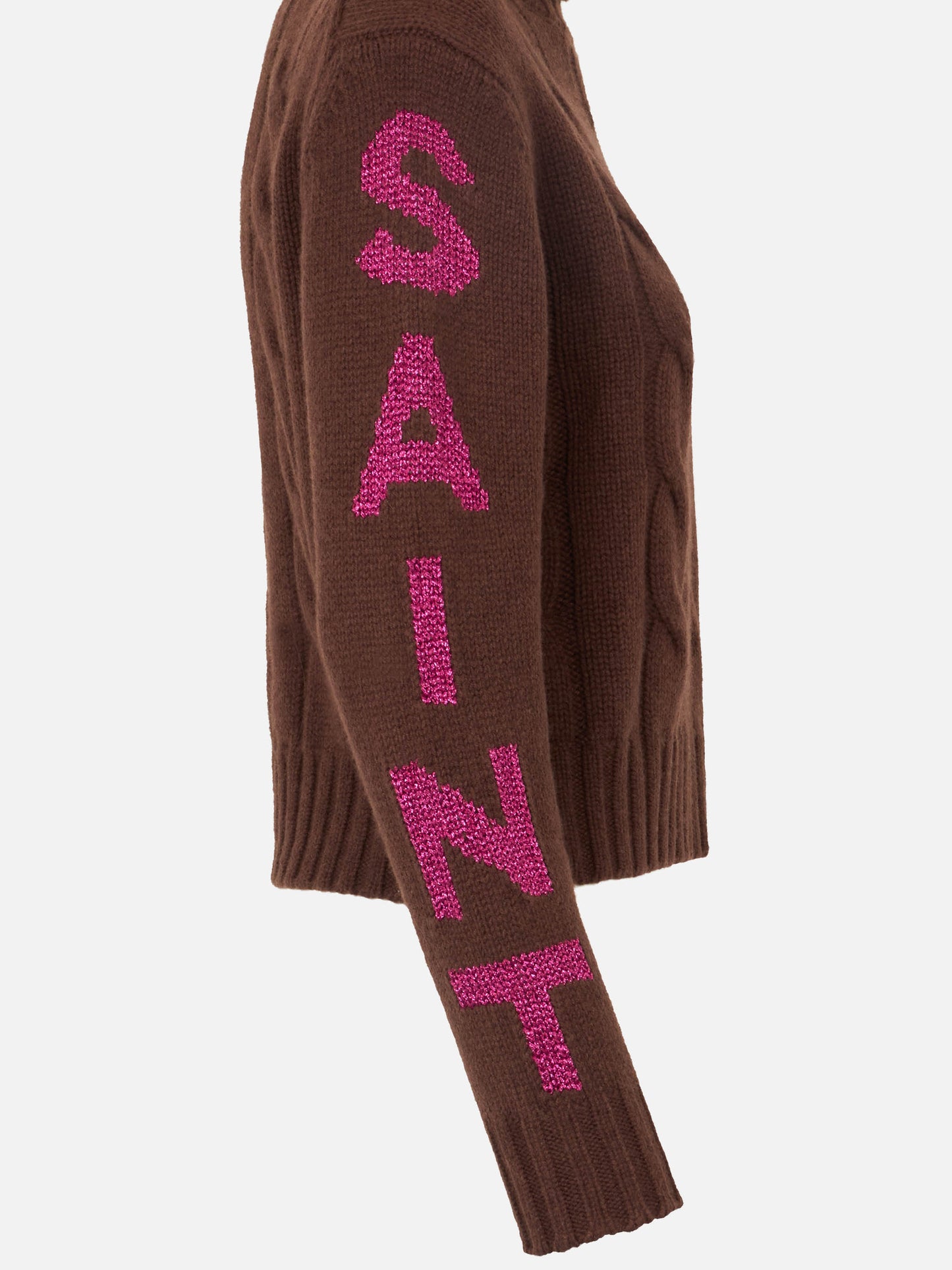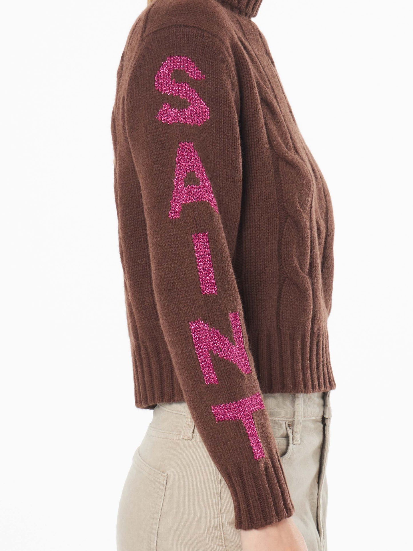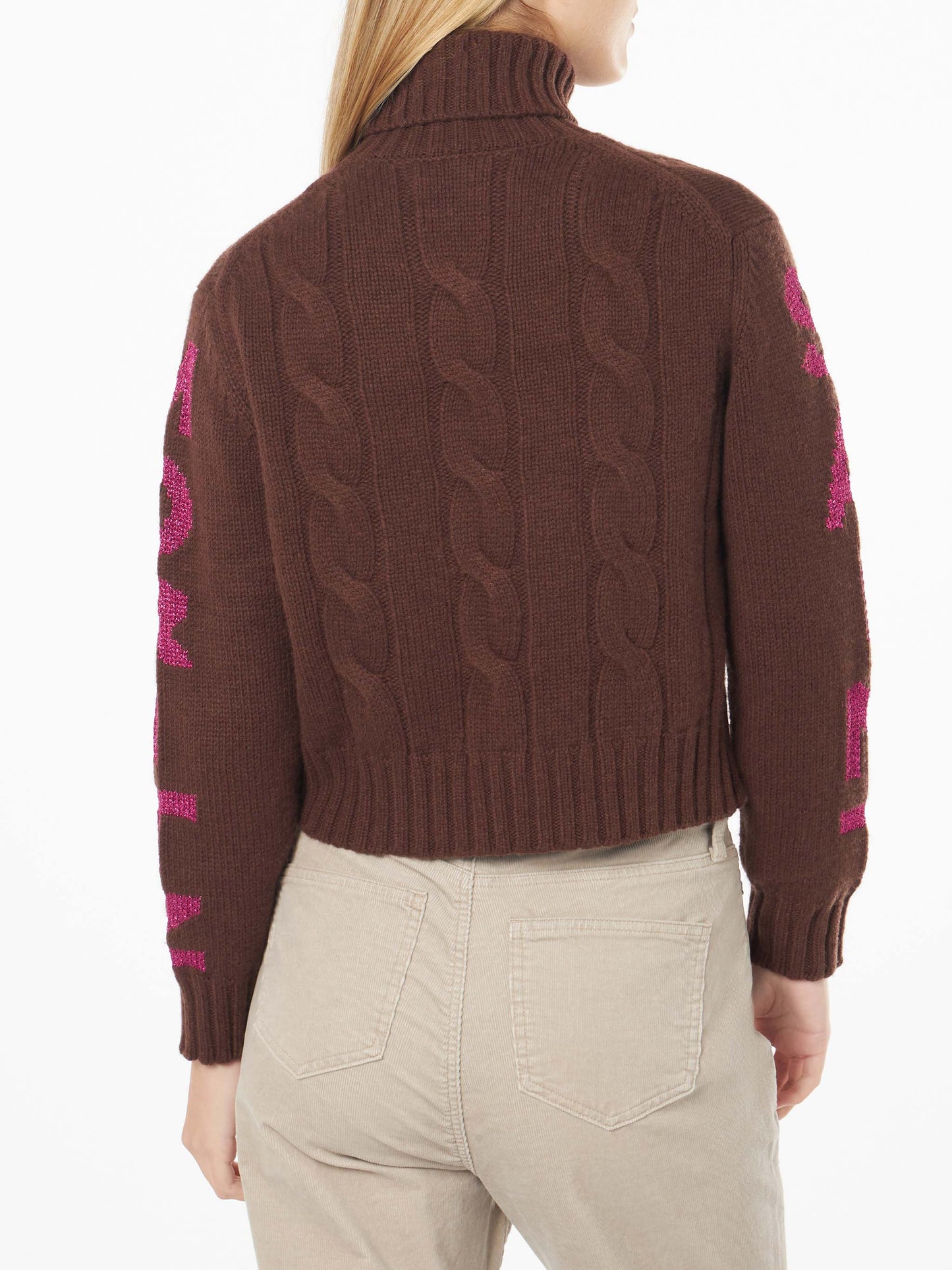 Rollkragenpullover für Damen mit Zopfmuster und Saint Moritz-Jacquard