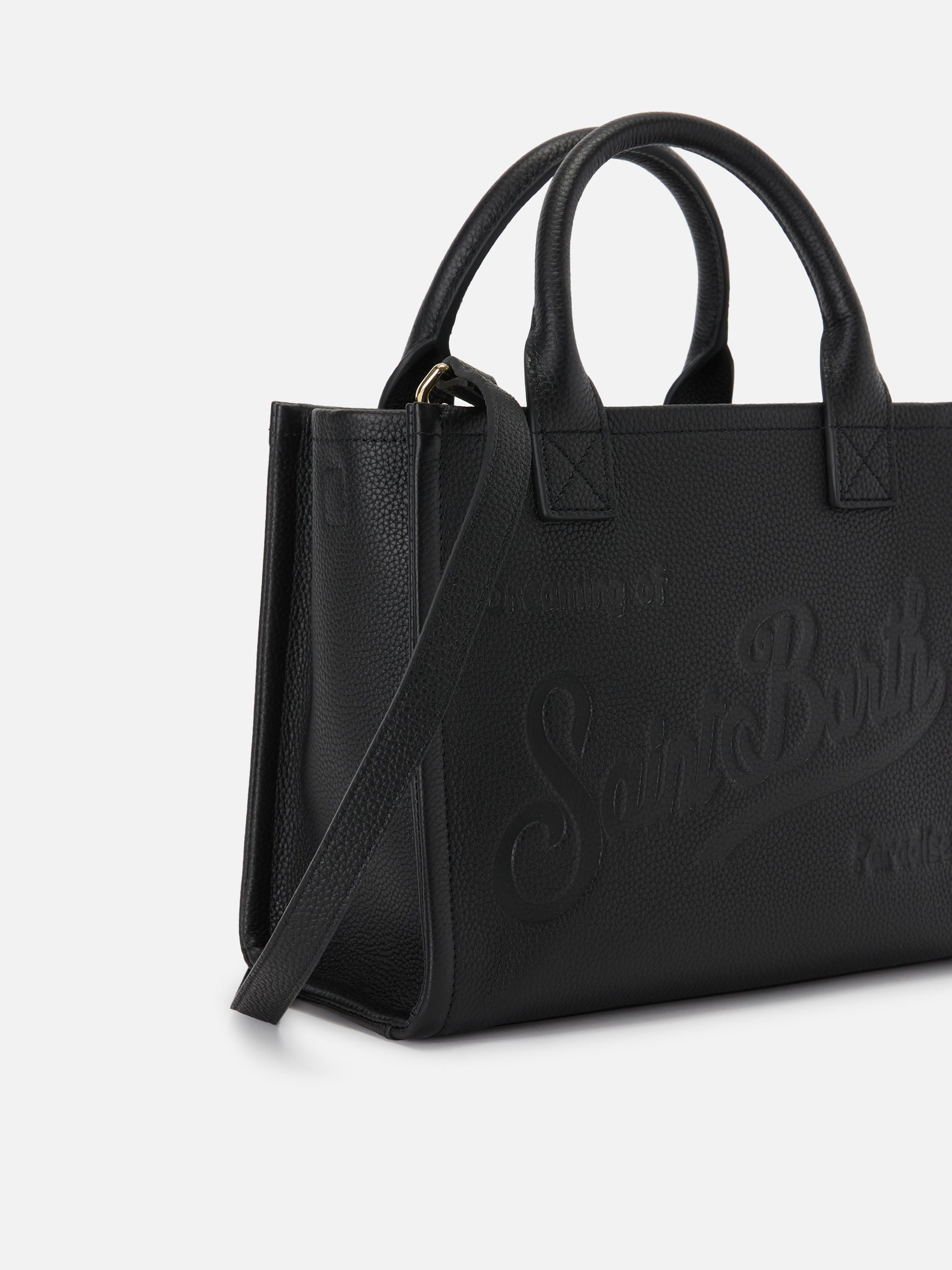 Borsa Vanity medium in pelle martellata nera