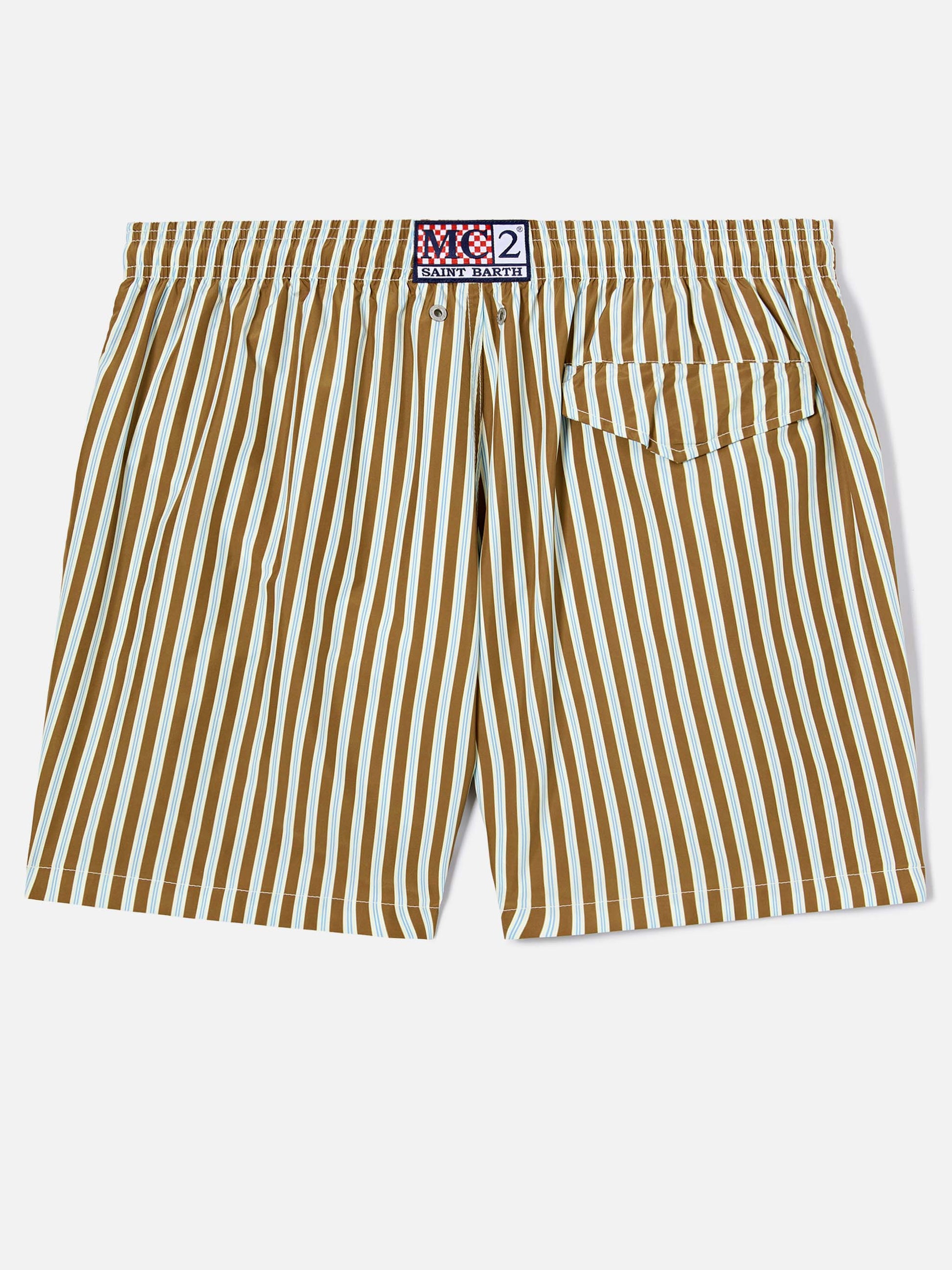 Costume mare Lighting a righe marroni con ricamo St. Barth