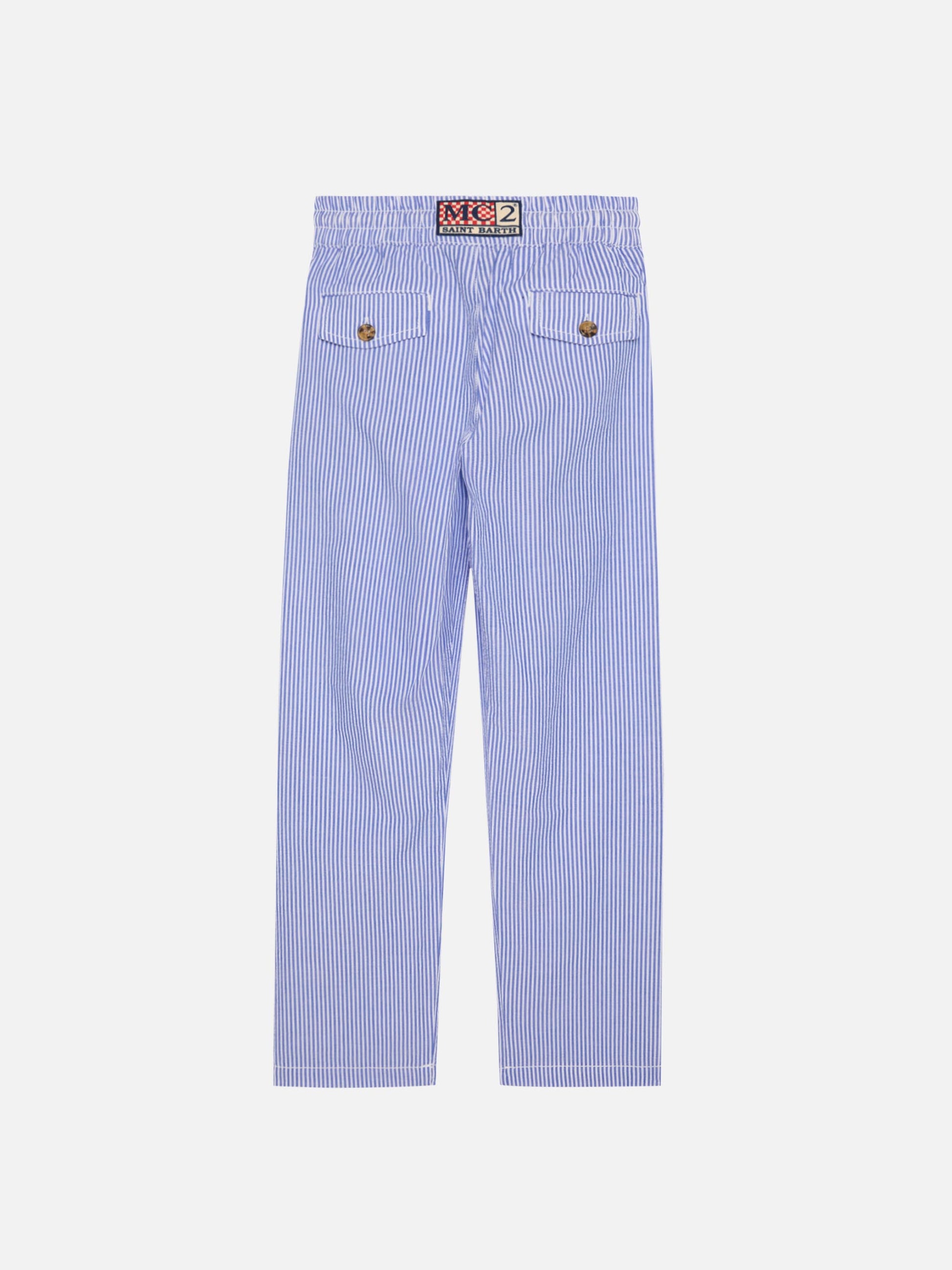 Pantaloni Calais Jr in seersucker rigato con coulisse