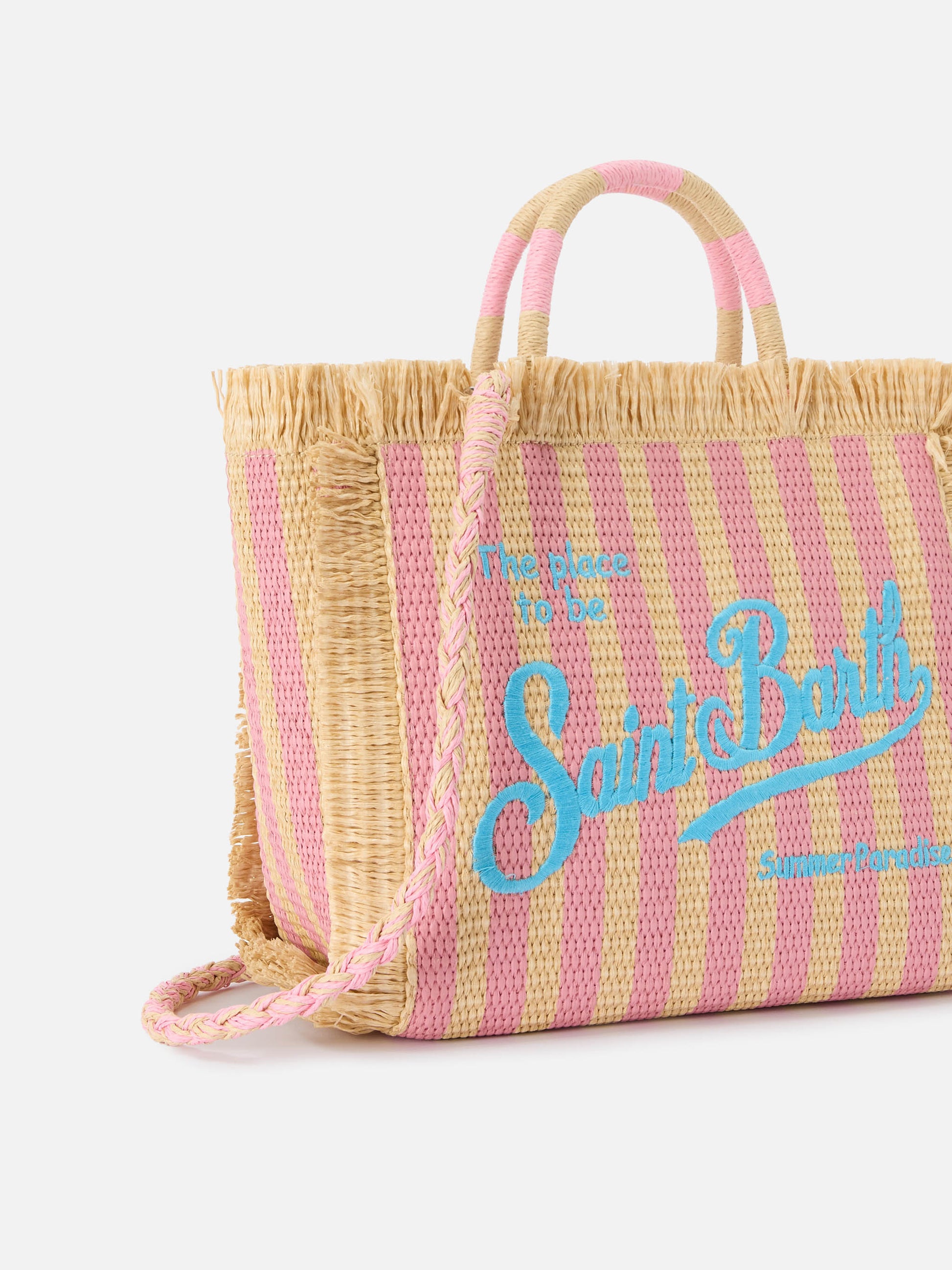 Borsa Colette in tessuto effetto paglia a righe con logo ricamato
