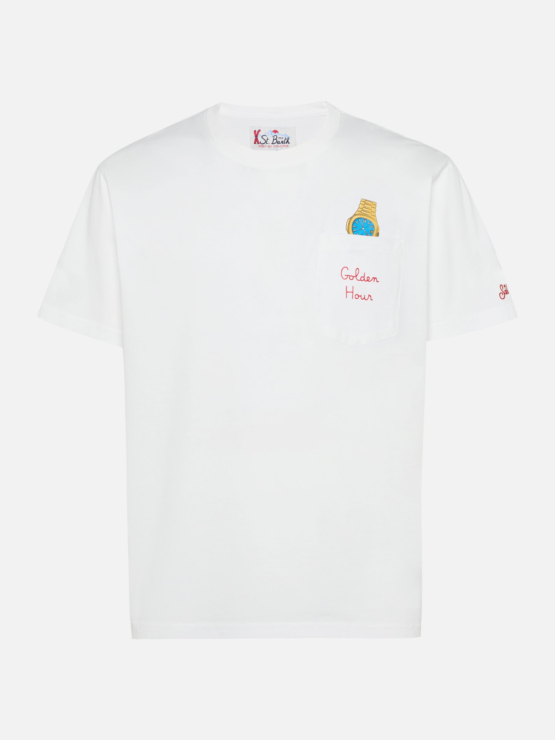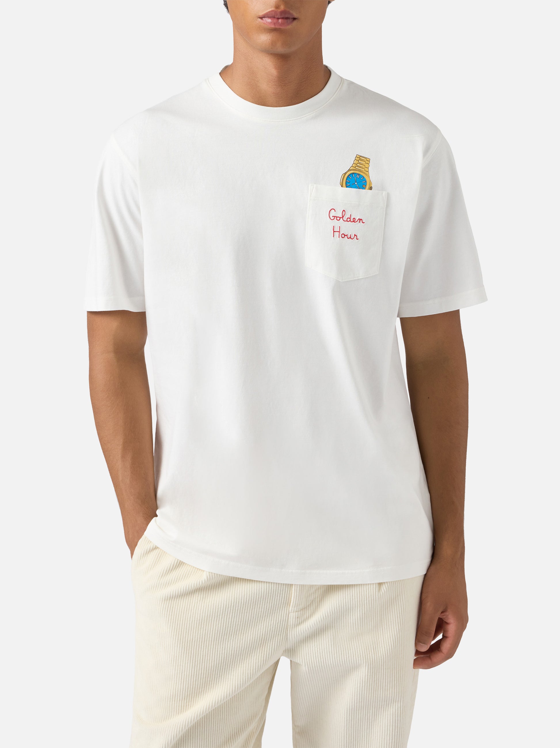 T-shirt Connor in cotone bianco con ricamo sul taschino Golden hour