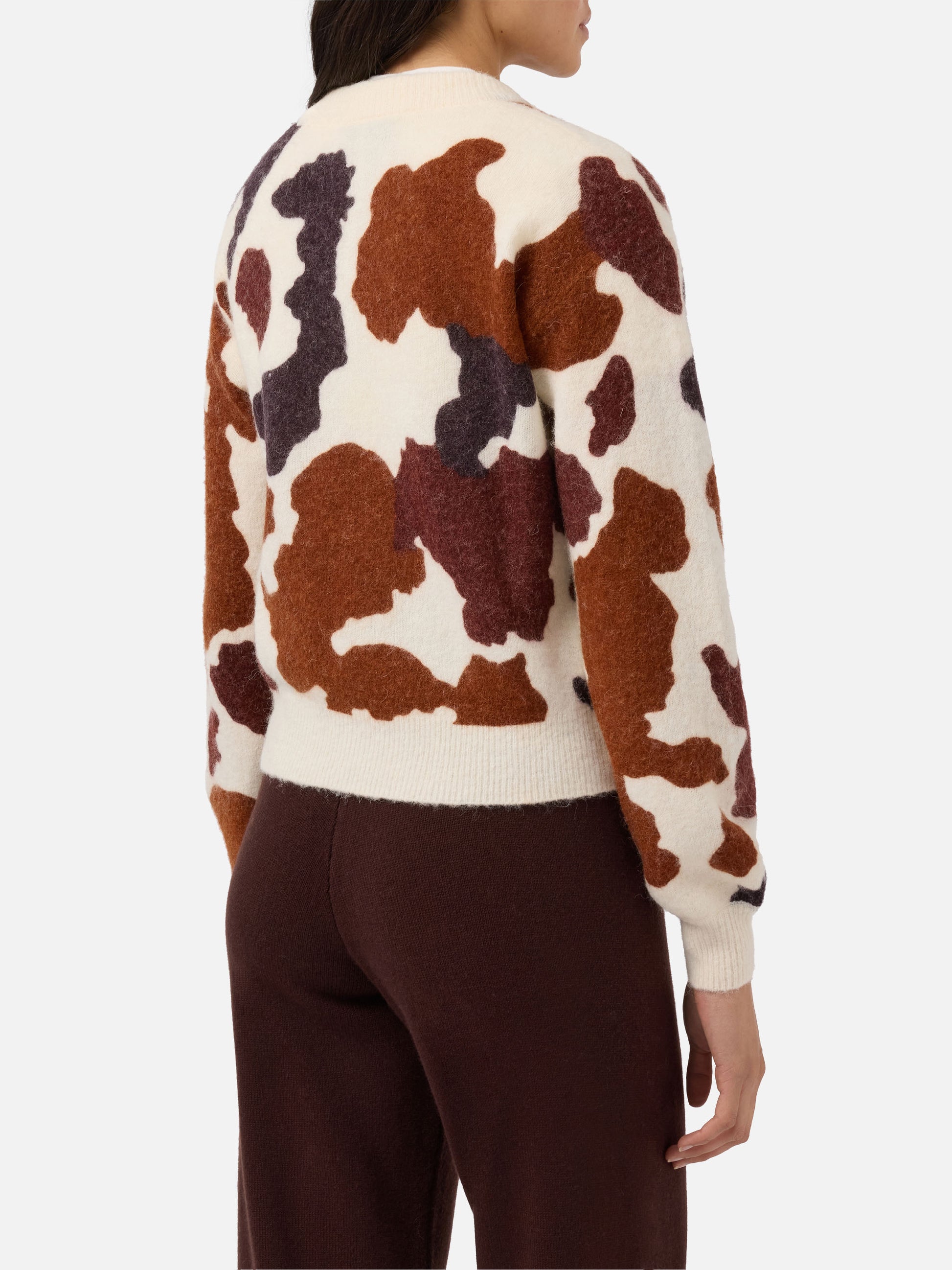 Maglione Danya in misto lana merino e alpaca stretch con stampa muccata